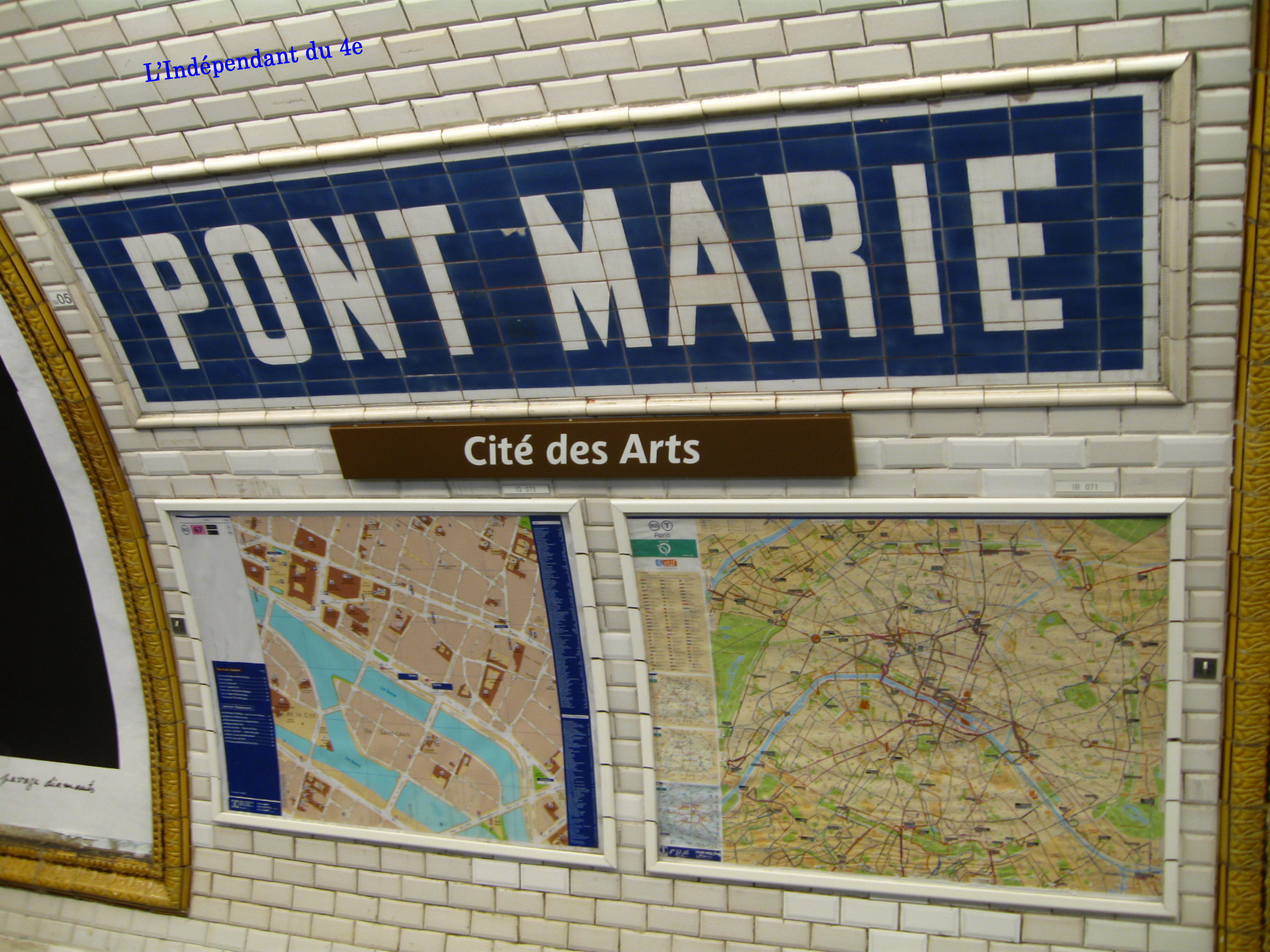 J'ai récemment évoqué l'ancienneté de la voûte d'une partie de la station Châtelet de la ligne 7 (article du 25 juillet 2009). La station Pont-Marie est située juste après quand on prend le métro en direction de mairie d'Ivry. Elle porte le nom du pont tout proche qui relie la rive droite à la rive gauche (voir mon article du 7 mai 2008 à propos de ce pont).