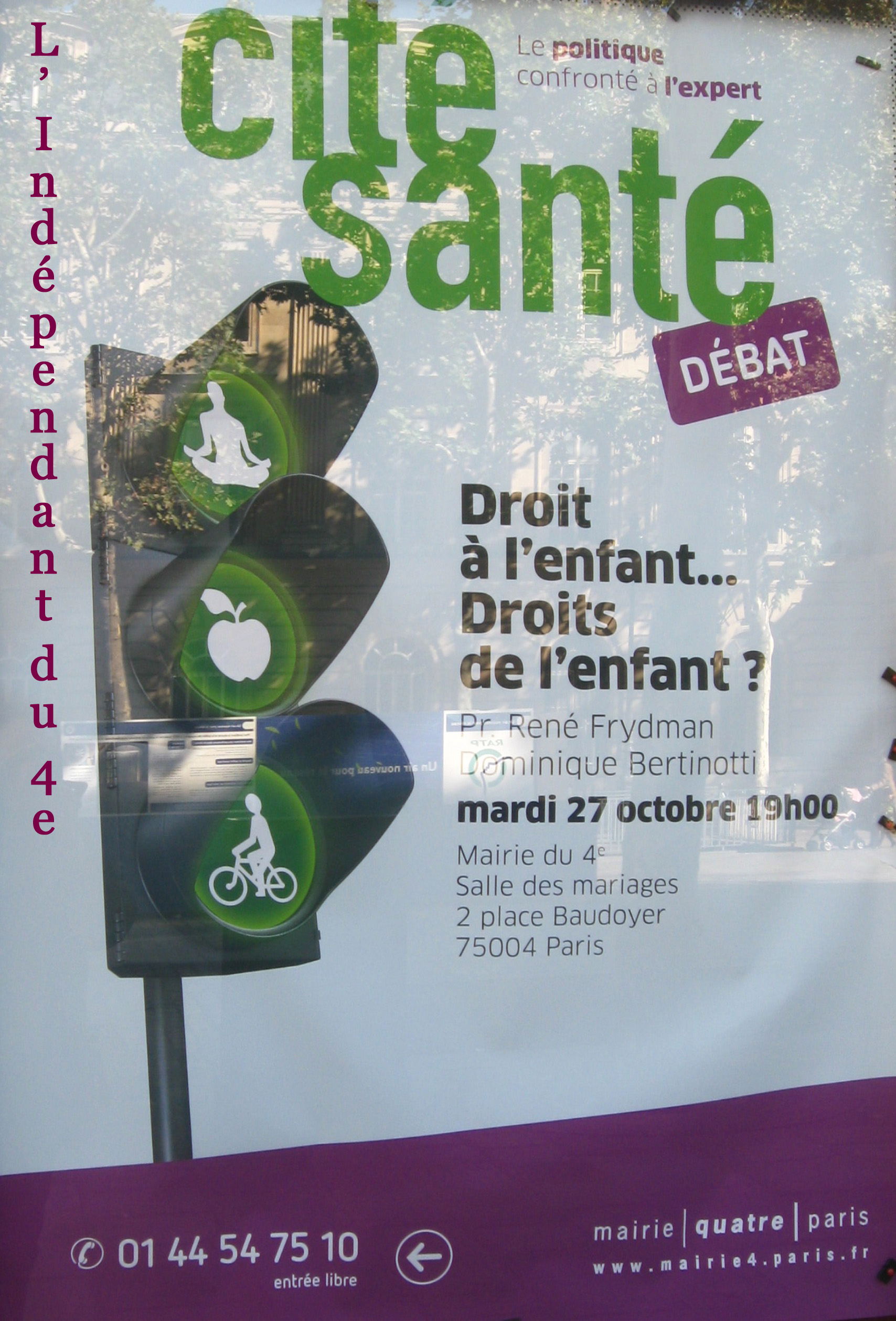 Cet anniversaire me permet, en effet, de revenir sur une conférence qui s'est tenue le 27 octobre dernier dans la salle des mariages du 4e arrondissement. Il s'agissait du cycle "Cité Santé" proposé par le 1er adjoint du 4e, Jean-Louis POURIAT. Connaissant les qualités humaines de cet édile, qui par ailleurs est le directeur du service des urgences de l'Hôtel-Dieu, cela faisait plusieurs fois que j'avais voulu assister à ces conférences sans en avoir le temps jusque-là.