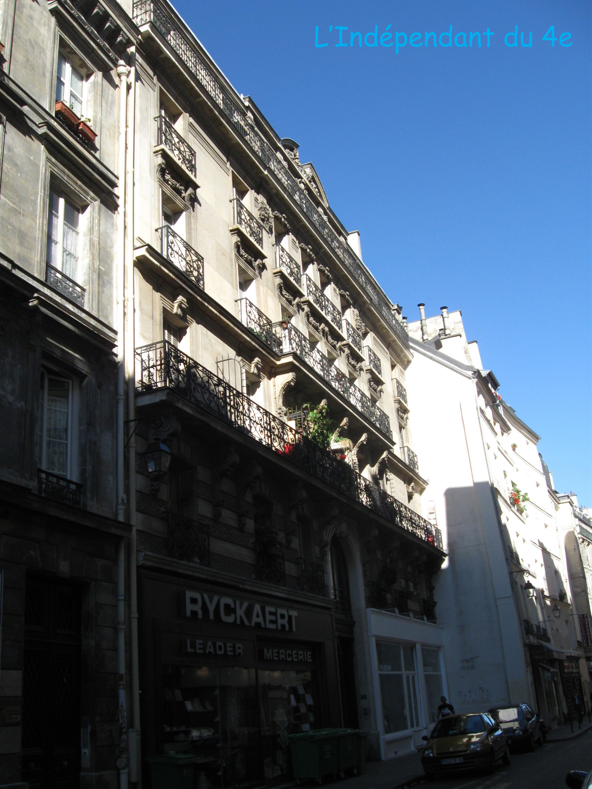 La rue Sainte-Croix-de-la-Bretonnerie aurait du être élargie sur toute sa longueur si on s'en tient aux projets de réalignement de la fin du XIXe siècle. Heureusement, pour la beauté du quartier, les percées envisagées n'ont pas été menées à terme. Cependant, certains immeubles ont été construits à cette époque où l'on pensait que la rue avait vocation à devenir beaucoup plus large. Cela explique que l'on trouve au 39 un immeuble fin XIXe siècle au décor très riche mais qu'on ne puisse pas admirer la façade en raison de l'étroitesse de la rue.
