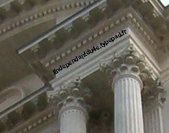 - at the top level, there are Corinthian capitals. Even if they are very distant, they can be recognized because there are two levels of acanthus leaves. It is the symbol of the "neutral" gender and was widespread in the Roman Empire (for instance in the Pantheon in Rome or in the Maison Carrée in Nimes).