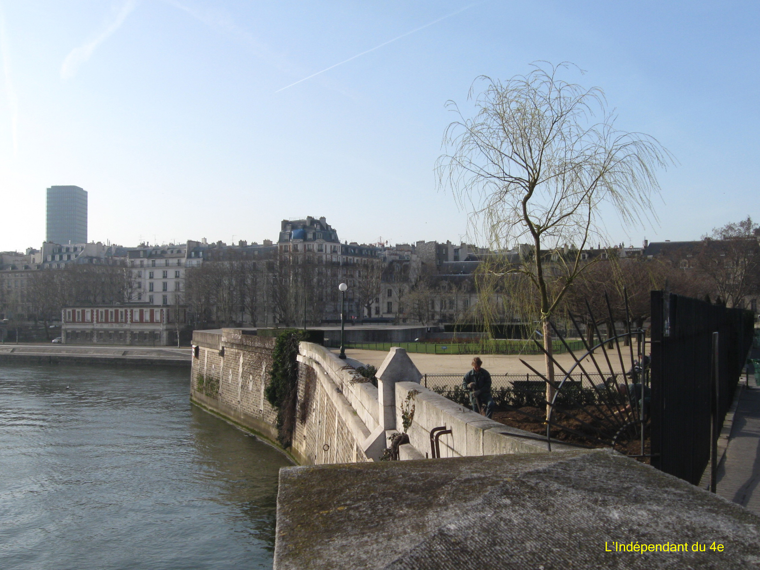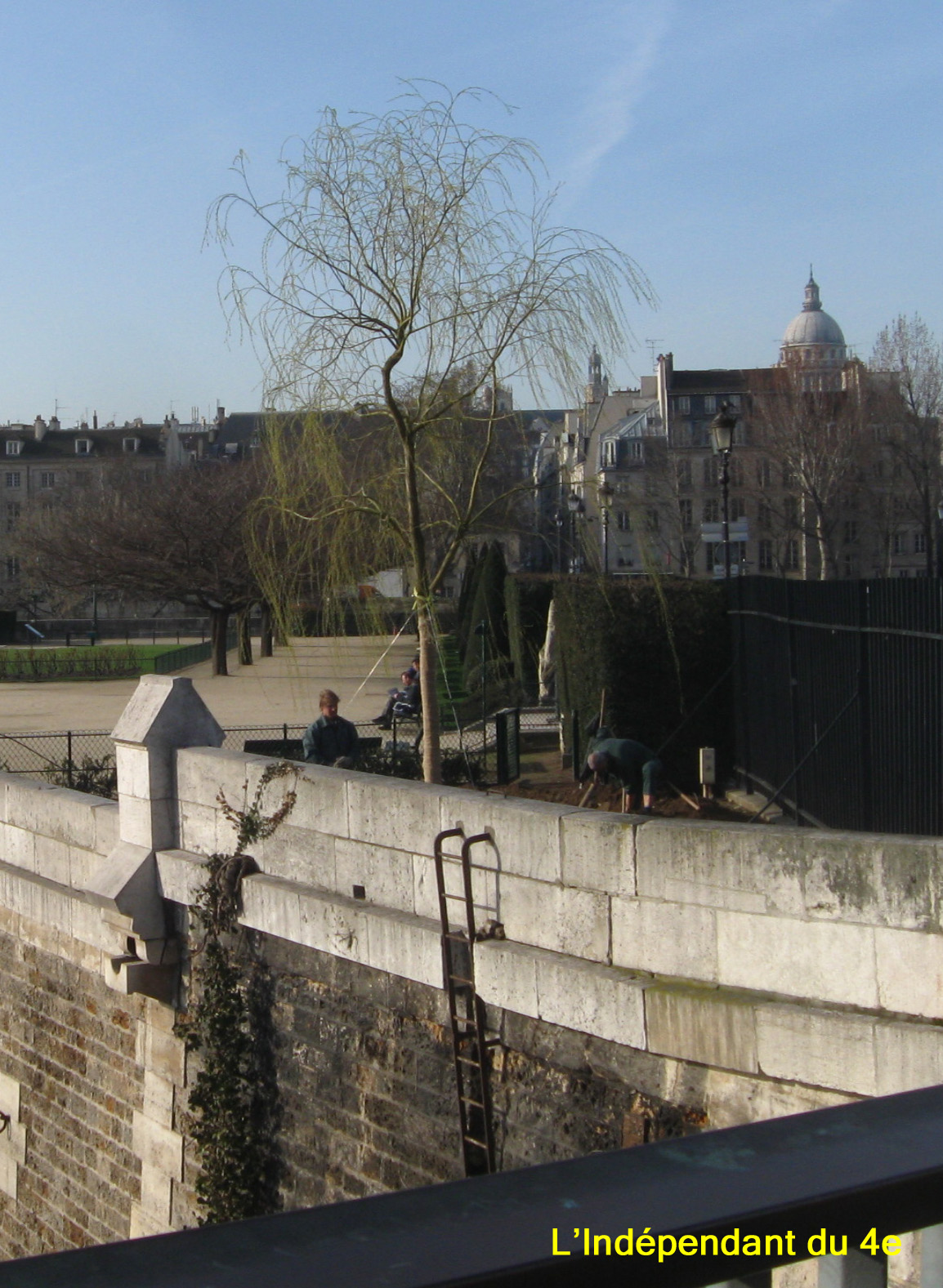 Voici de nouvelles photographies exclusives pour l'Indépendant du 4e. Le saule pleureur, qui a été tronçonné au début de l'été 2009 (ce dont j'ai parlé abondamment l'an dernier), vient d'être remplacé. Grâce à Patrice V. qui m'a signalé cette importante nouvelle, j'ai pu aller prendre des vues de ce nouveau venu dans le 4e arrondissement (photographies prises lundi 22 mars 2010).