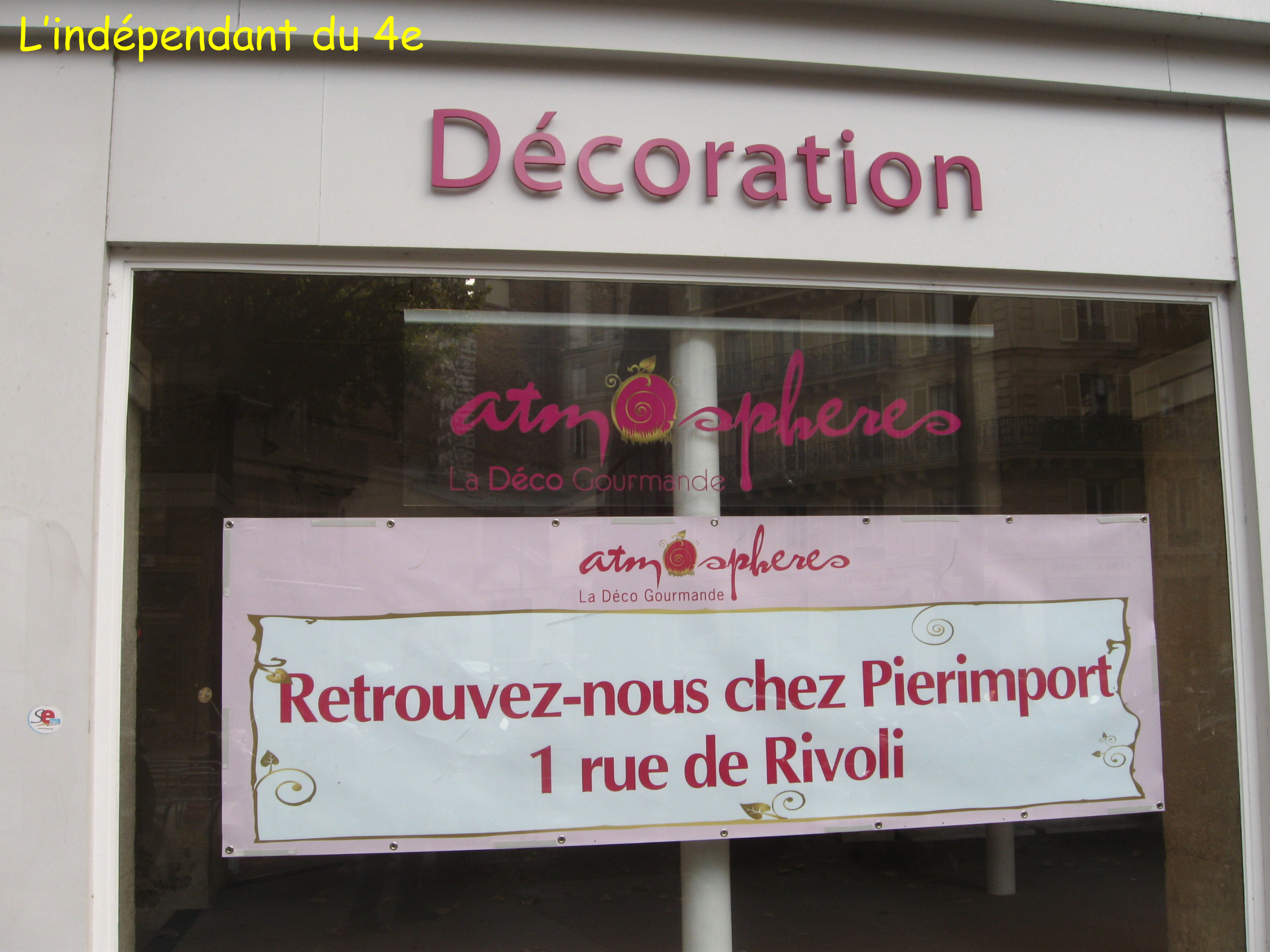 Cependant lors du Conseil de quartier Saint-Gervais dont je parlais dans cet article, une amie avait souligné que c'était un magasin d'aménagement intérieur qui avait repris le bail commercial. En me rendant boulevard Henri IV, je me suis en effet rendu compte que le magasin "Atmosphères" annonçait son déménagement à l'emplacement de Pier Import.