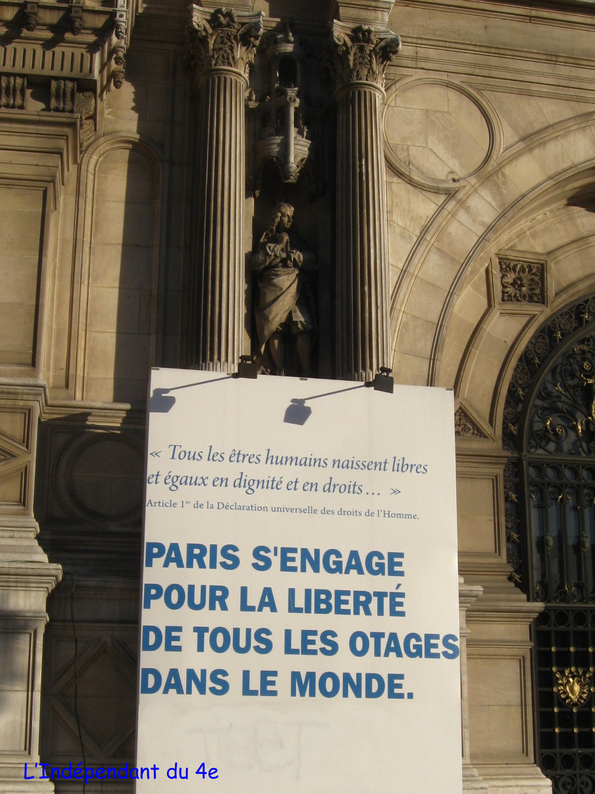 Le plus triste est que, même si les Français dont je viens de parler sont finalement libérés ce qu'il faut bien sûr espérer pour le plus tôt possible, le panneau ne pourra jamais disparaître car on ne voit pas comment la ville de Paris à elle toute seule peut espérer régler le sort des otages de tous les pays du monde entier quelle que soit leur nationalité. On a voulu faire dans le politiquement correct en 2008 à la libération d'Ingrid Bettancourt en mettant ce nouveau panneau mais finalement je ne suis pas sûr que ce soit bien productif.