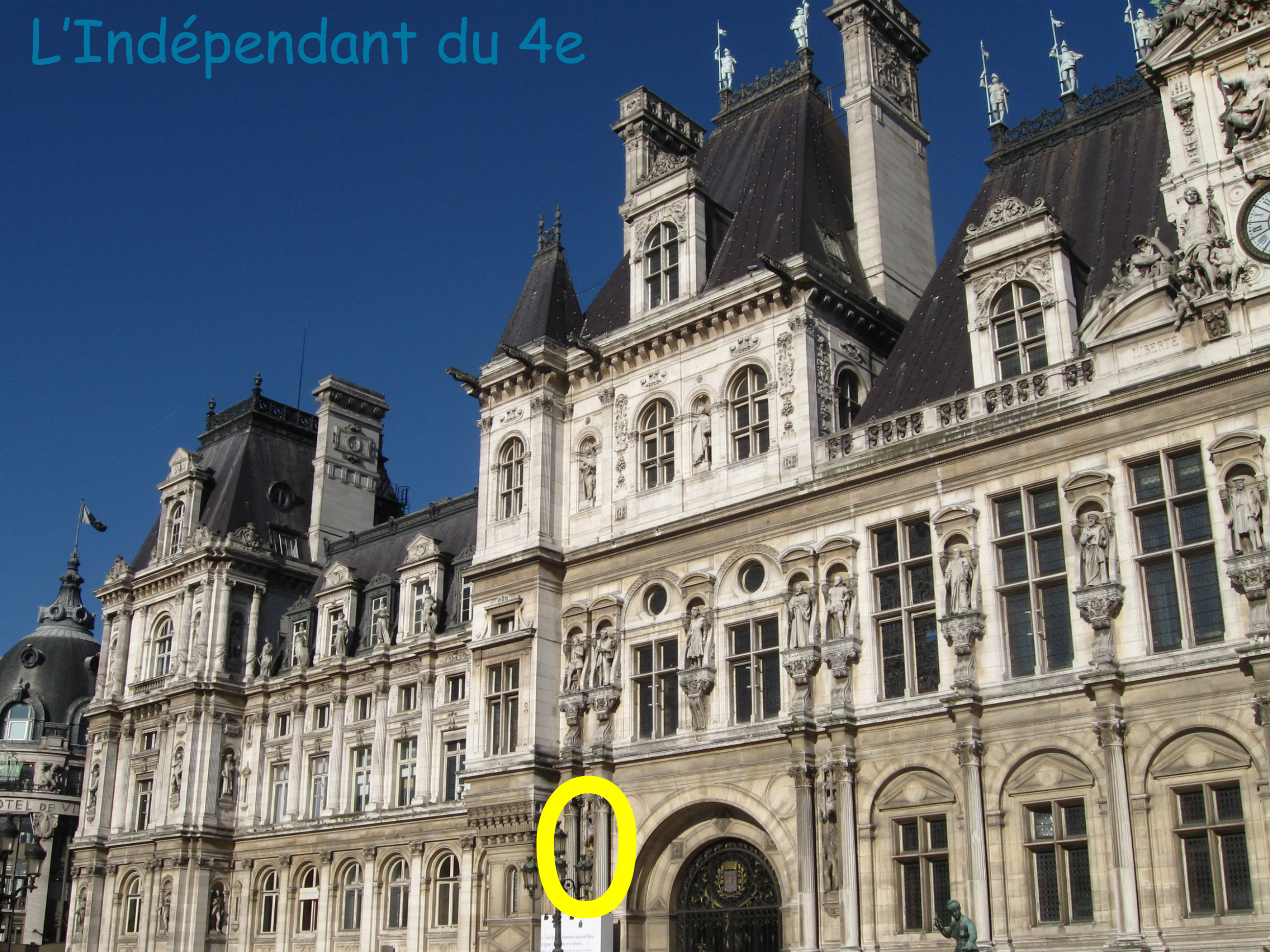 Cependant, le portrait d'Ingrid Bettancourt a été remplacé dans les jours qui ont suivi par un nouveau panneau pas très esthétique qui affirme un soutien de Paris pour "tous les otages dans le monde". Le nom de Molière reste donc caché... On suppose peut-être que sa notoriété est suffisante pour que chacun puisse le reconnaître. A moins que finalement, les locataires de l'Hôtel de Ville ne se moquent complètement des statues de l'Hôtel de Ville (ce dont je suis assez persuadé quand on voit le grillage horrible placé devant de nombreuses statues [voir article du 8 février 2010]).