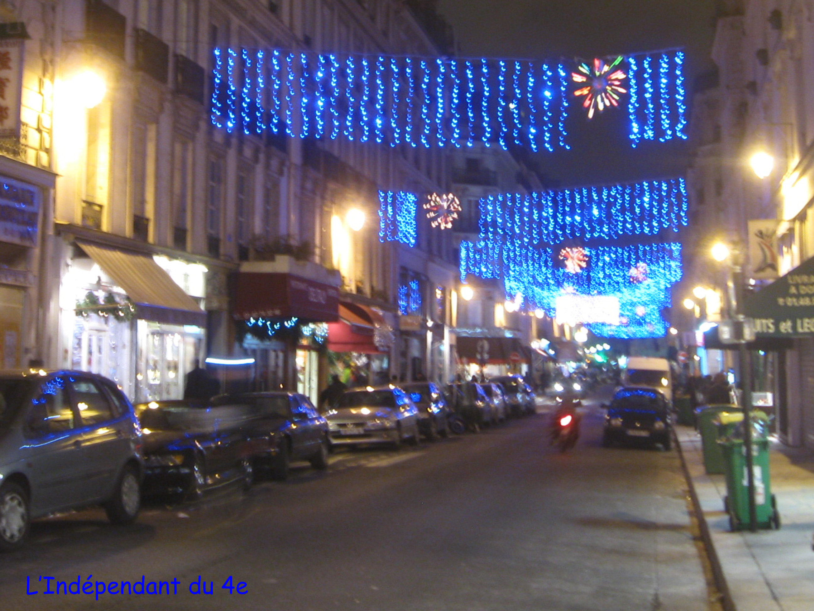 La rue Rambuteau est une des seules rues du 4e où les illuminations de Noël sont une tradition (rendons toutefois hommage aux commerçants de la rue Saint-Paul qui ont aussi décoré la rue cette année).