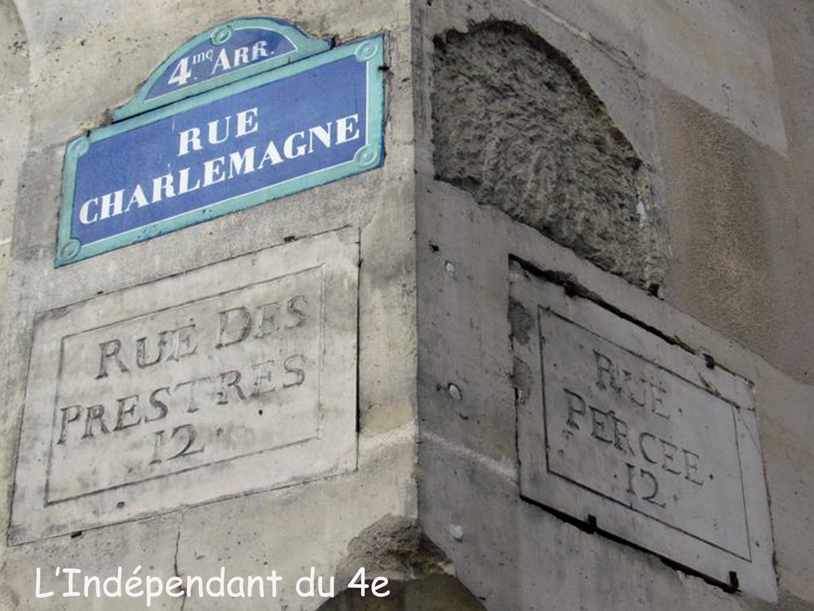Pour finir, voici deux dernières plaques qui viennent celles-ci du quartier Saint-Gervais : l'angle entre la rue du prévôt (appelé au XVIIIe siècle la "rue percée) et la rue Charlemagne (appelée la rue des Prestres).
