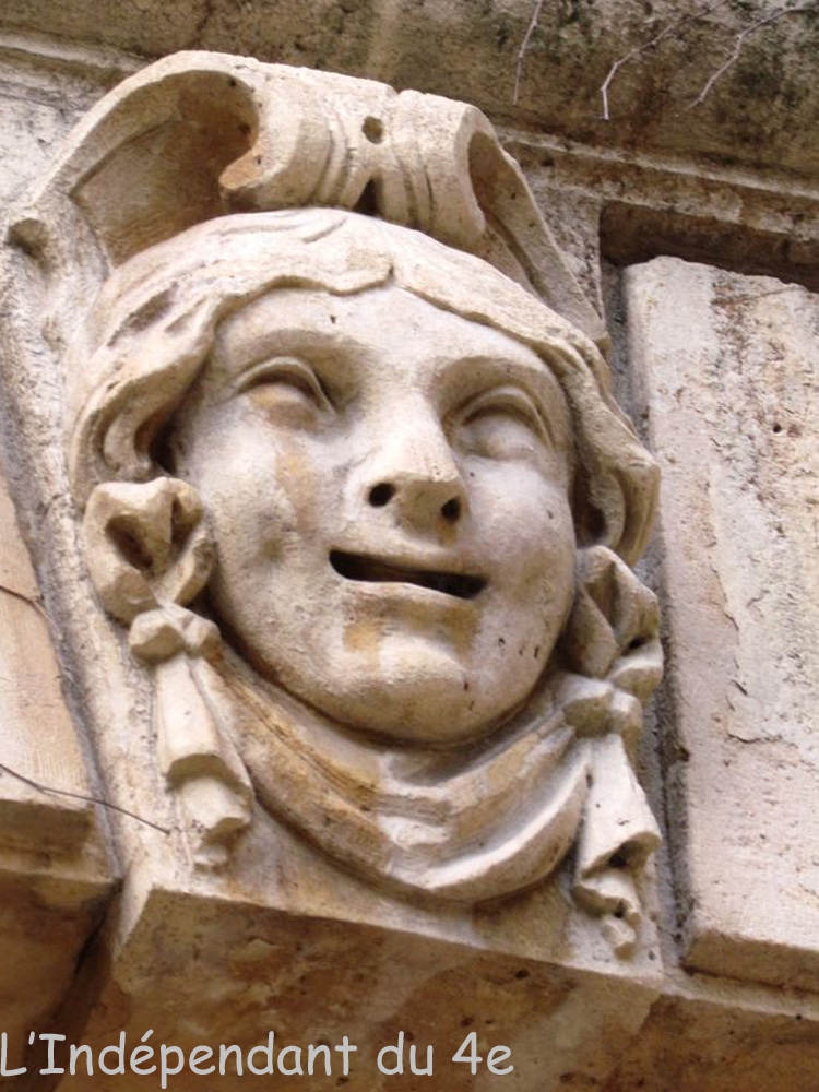 Le bâtiment plus récent qui donne sur la cour d'honneur et qui est situé en face de la façade principale semble avoir été complètement refait au XIXe siècle. Néanmoins, pour faire bonne mesure, 5 mascarons ont été placés sur cette façade. Peut-être des restes d'une construction plus ancienne. Je ne publie la photographie que d'un seul d'entre eux (le n°10) :
