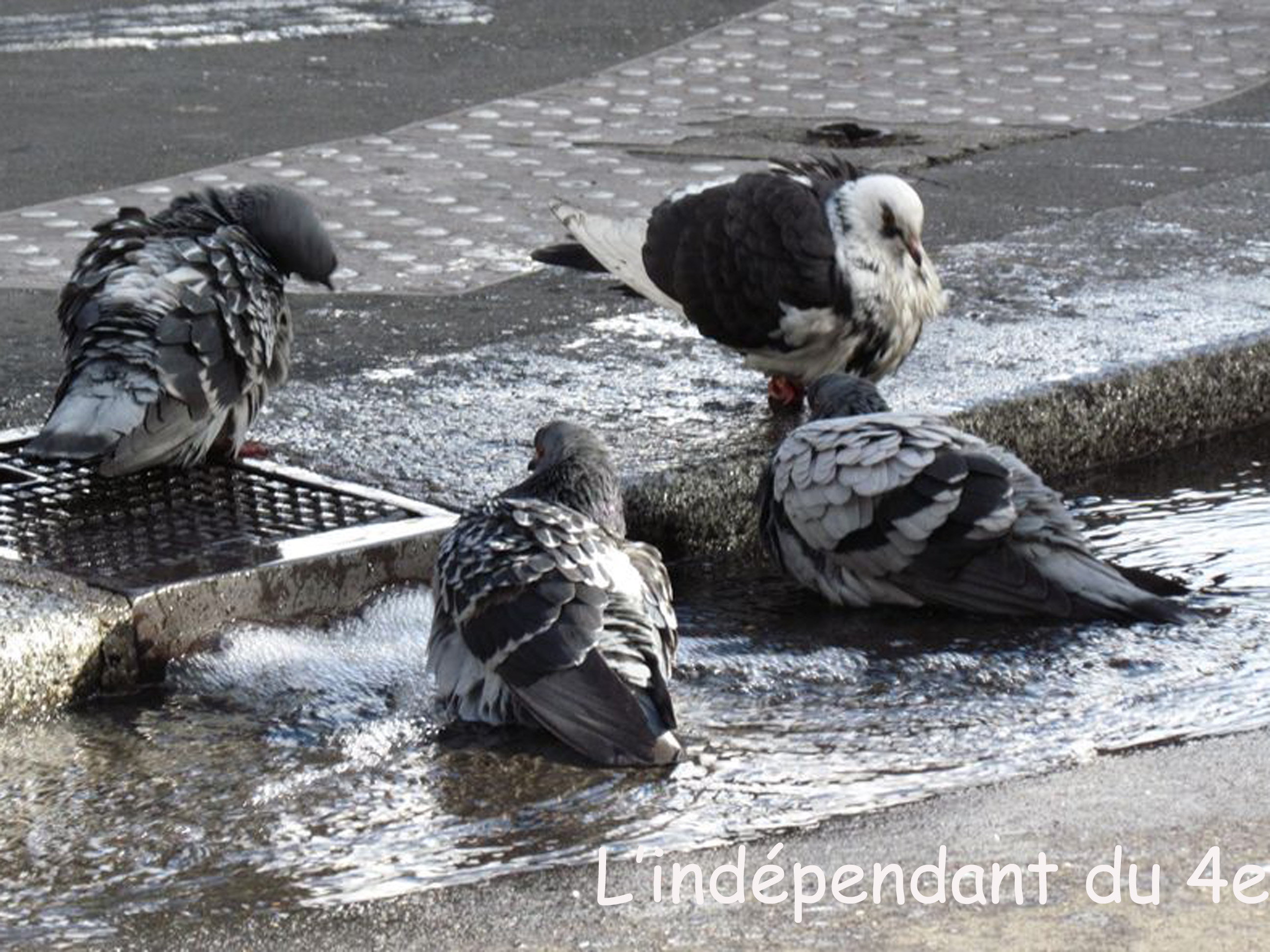 On peut voir dans les rues, le ciel et sur les façade du 4e arrondissement de nombreux pigeons. Cela ne fait pas le bonheur de tous et... de toutes (une pensée amicale pour la femme d'un élu du 4e).