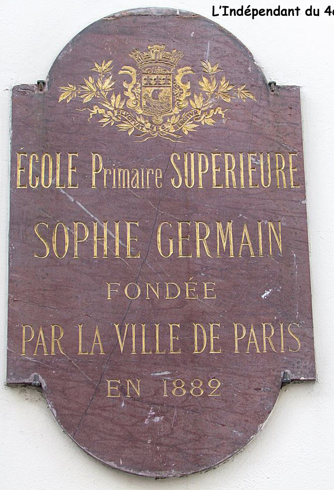 La plaque comporte une date : 1882. Il s'agit de l'année où "l'école primaire supérieure" qui a précédé le lycée Sophie Germain a ouvert ses portes à cet endroit :