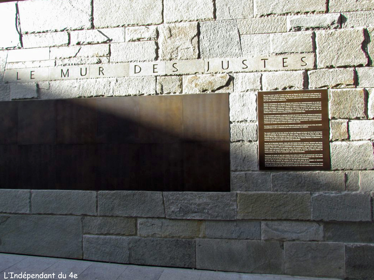 Le Mur des Justes a été inauguré le 14 juin 2006 en présence du Premier Ministre de l'époque, Dominique de Villepin (voir le site du Mémorial de la Shoah). Je rappelle les paroles qu'il a prononcé à cette occasion : "Derrière ces noms il y a des hommes et des femmes issus de toutes les régions de France, de tous les milieux. Il y a des médecins, des infirmières, des enseignants, des fonctionnaires, des policiers, des prêtres et des pasteurs, des commerçants, des fermiers, des ouvriers. Derrière ces noms il y a des histoires multiples, des opinions politiques diverses, des convictions différentes. [...] A cet instant précis, ces hommes et ces femmes nous rappellent qu'il est un devoir qui dépasse tous les autres, un devoir de protection, un devoir d'assistance, et peut-être plus simplement encore un devoir d'humanité. Oui, à cet instant précis, pour se sauver soi, il fallait prendre le risque de porter secours à l'autre. Oui, à cet instant il s'agissait bien de sauver l'homme dans son évidence première".