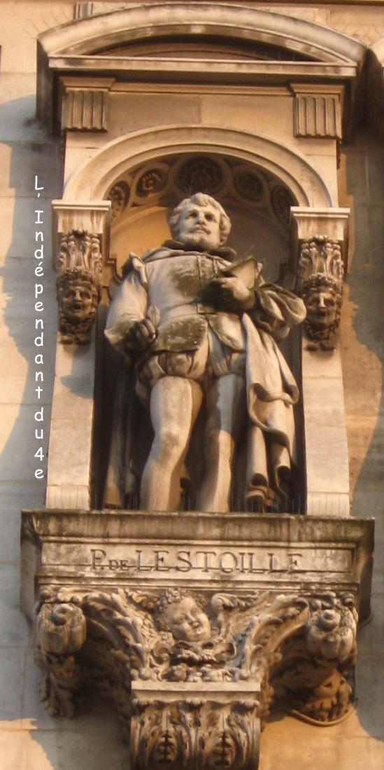 Voici le 80e volet de la série consacrée aux statues de l'Hôtel de Ville. Il concerne "P. de Lestoile" que l'on peut voir au 1er étage à gauche du portail situé à droite du pavillon central de l'Hôtel de ville :