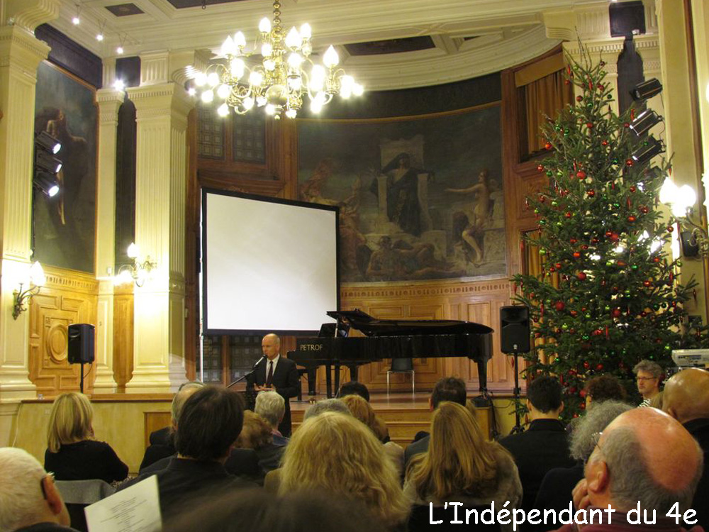 Le maire du 4e arrondissement a ouvert cet hommage dans la salle des fêtes du 4e arrondissement. Il a remercié Jean-Pierre Plonquet qui a été à l'initiative de cet hommage qu'il a ensuite mis en musique en partenariat avec les services de la mairie du 4e.