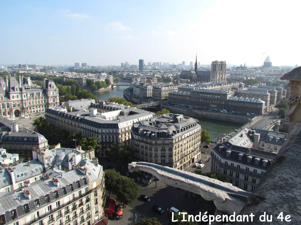 Vue 4 : de gauche à droite : l'Hôtel de Ville, l'île Saint-Louis, l'île de la Cité avec Notre-Dame et L'Hôtel Dieu