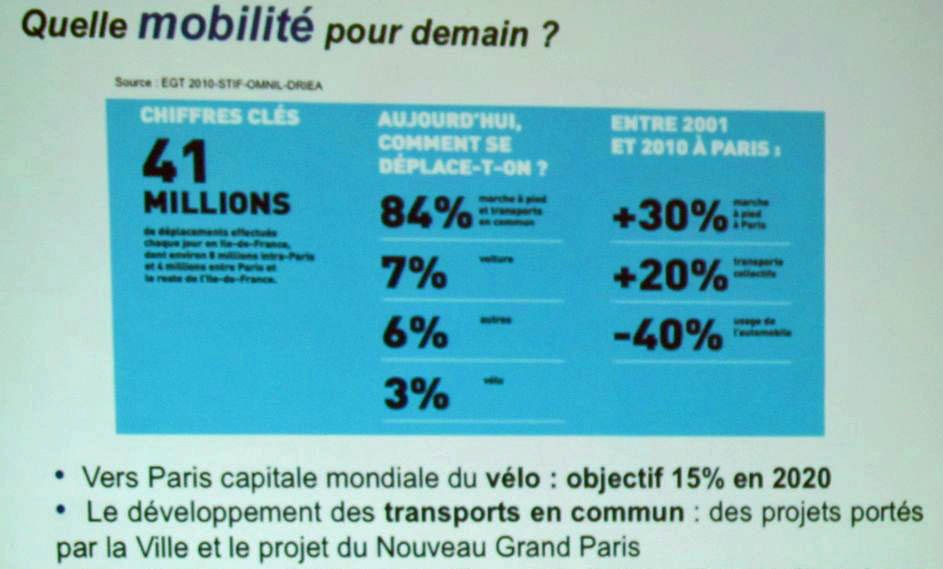 le vélo représentait 7% des déplacement en 2010. L'objectif est de passé à 15% en 2020.