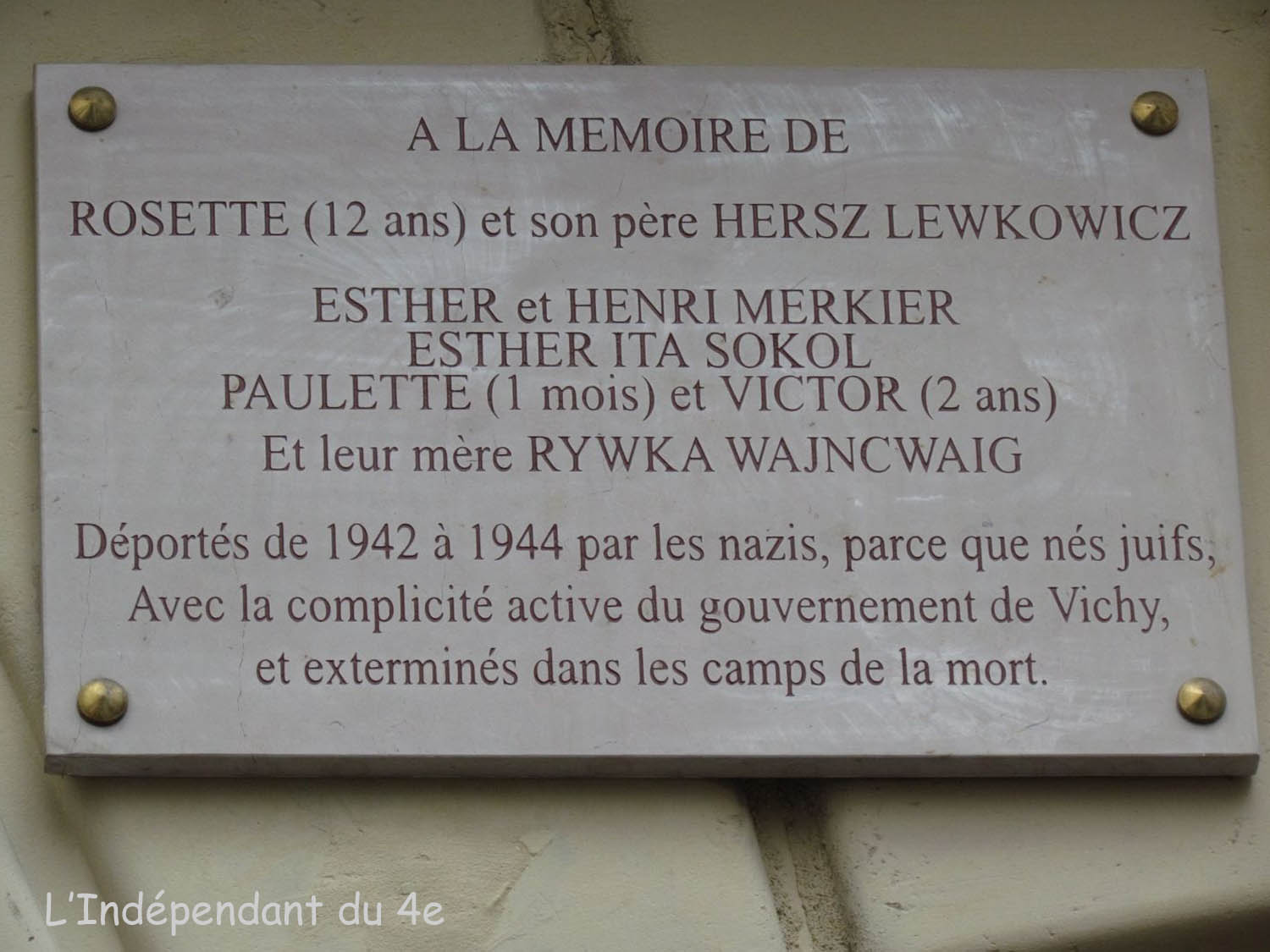 On retrouve le nom de Victor et Paulette Wajncwaig à quelques mètres de là : il figure dans la liste des 101 Petits-Enfants exterminés qui a été dévoilée il y a quelques semaines dans le Jardin des Rosiers-Joseph Migneret.