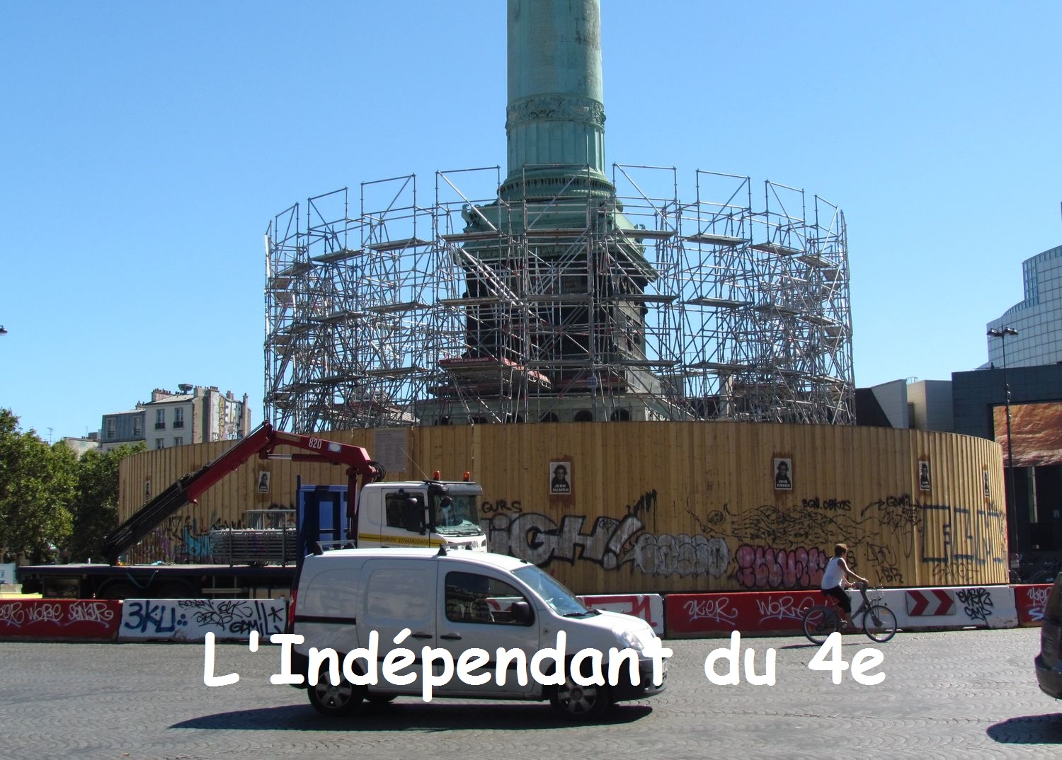 Des travaux ont commencé cet été place de la Bastille. Comme le montre cette photo prise le 24 août dernier, on voit que certains se sont empressés de mettre des graffitis sur la palissade qui enserre les échafaudages. Cela laisse présager à quoi pourrait ressembler le lieu quand il sera "modifié" et plus accessible d'ici quelques années comme on a pu le voir sur la statue après le "réaménagement" de la place de la République. Dans un précédent Conseil d'arrondissement, Jean-Pierre Plonquet (conseiller d'arrondissement UDI) avait souligné cet éventuel écueil.