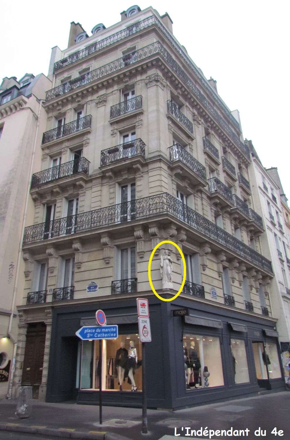 A l'angle de la rue de Sévigné et de la rue Saint-Antoine, on peut voir une statue à laquelle j'ai déjà consacré un article le 29 mai 2009 . Je publie un nouvel article pour aller un peu plus loin que les informations que j'avais données il y a maintenant près de 8 ans.