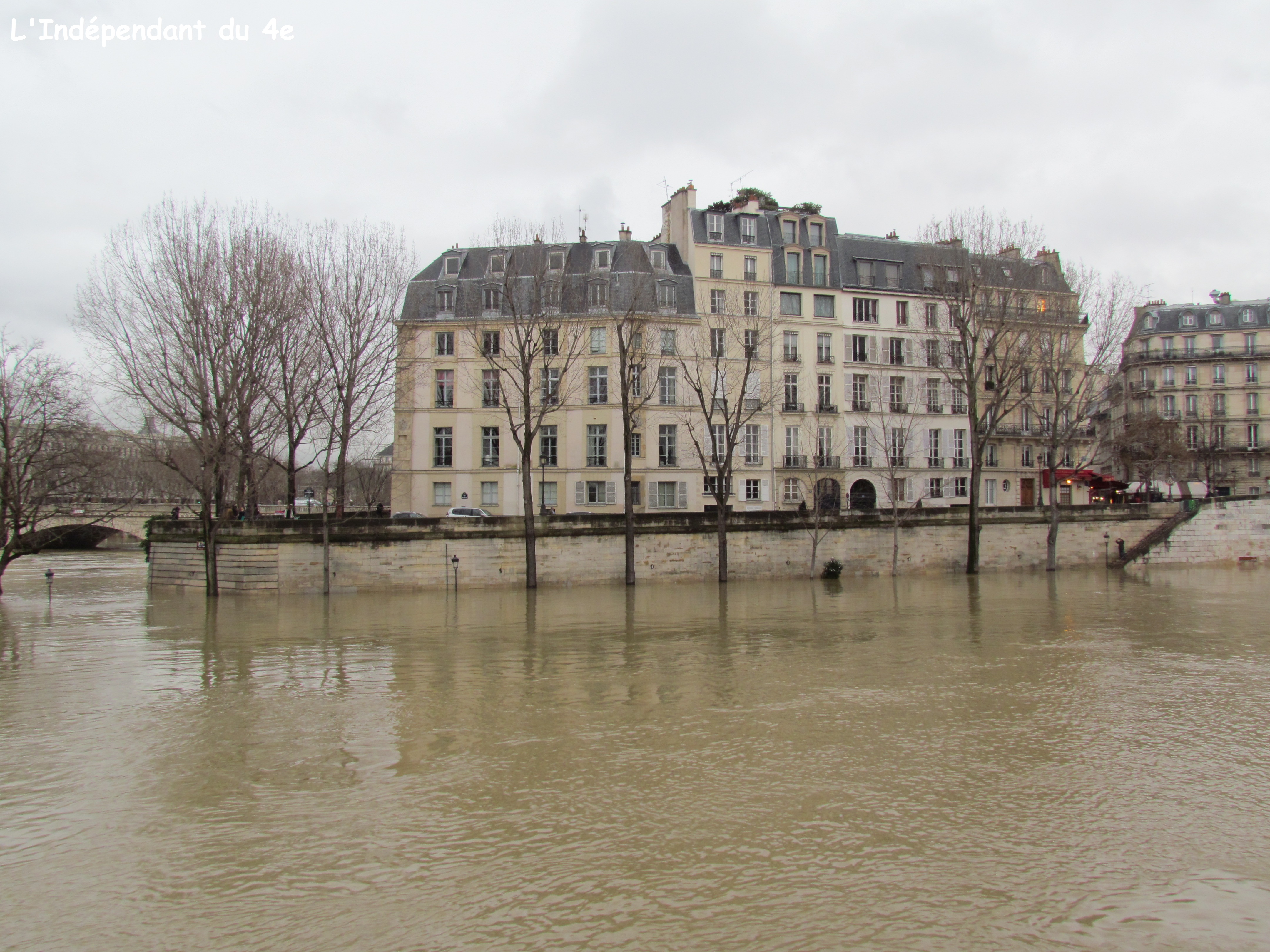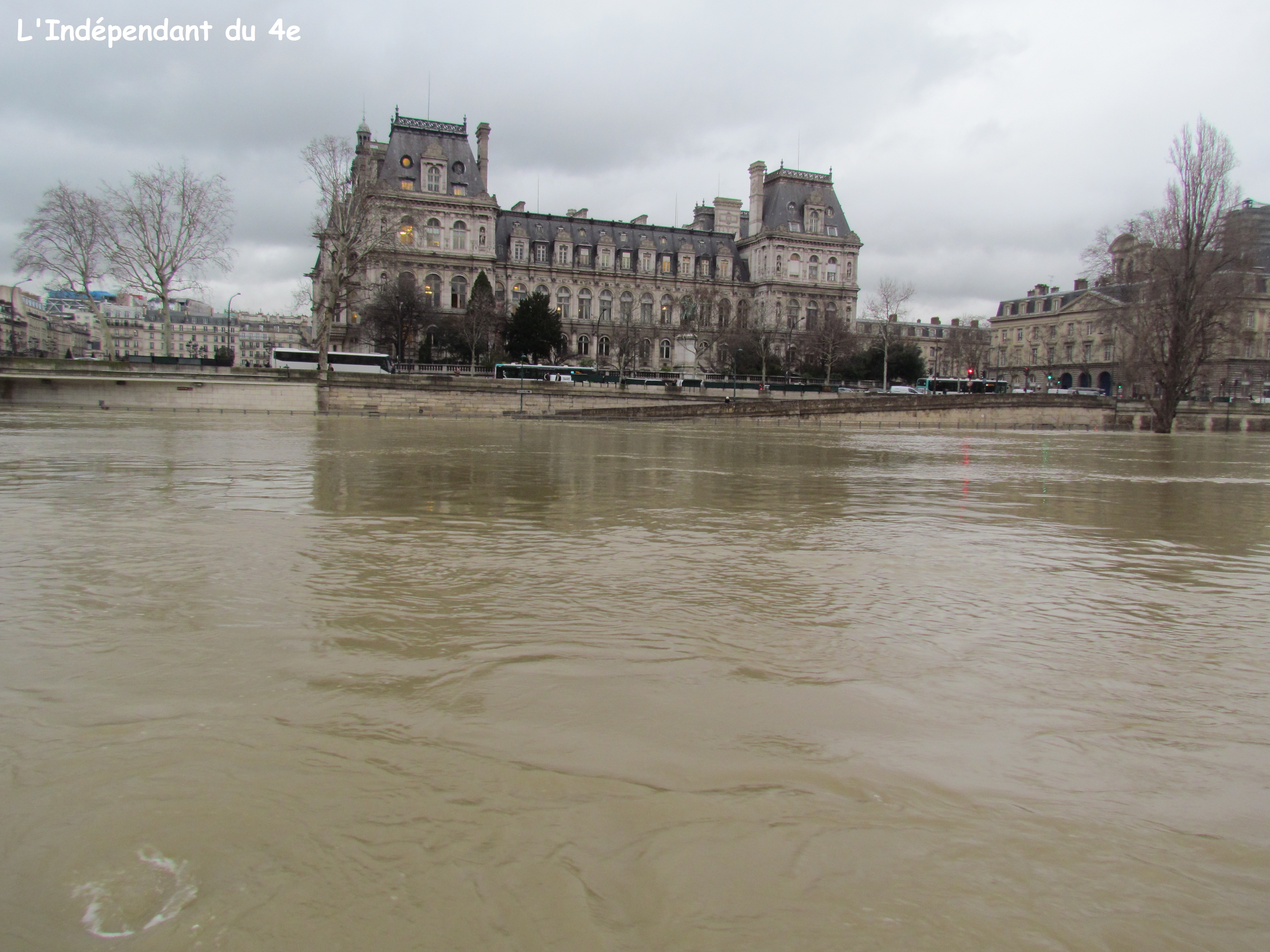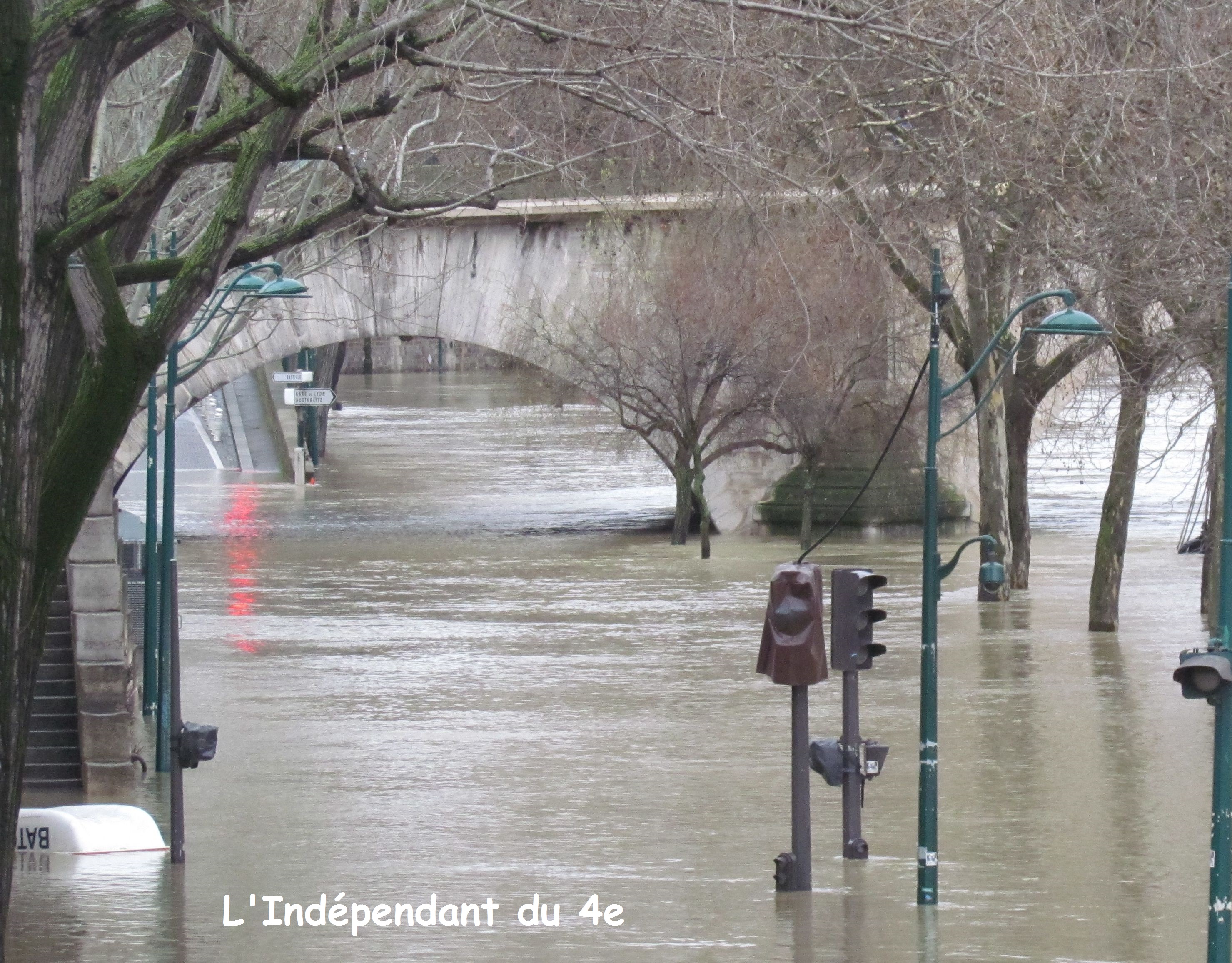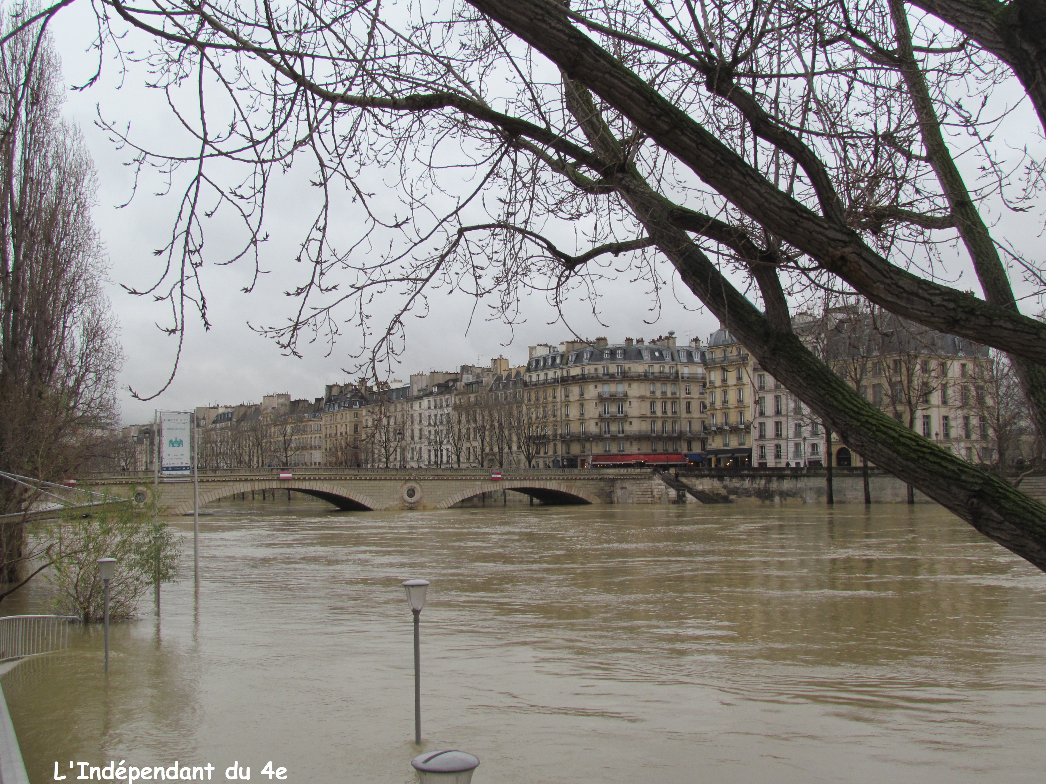 La Seine connaît en ce mois de janvier, un nouvel épisode de crue. La dernière fois ce n'était pas il y a si longtemps puisque c'était en juin 2016. (voir notamment article du 7 juin 2016 ). Cela permet à chaque fois de faire des prises de vue différentes de celles que l'on peut faire d'habitude. On peut de plus constater qu'une crue en hiver a quelque chose de plus triste et monotone qu'une crue de fin de printemps en raison du froid et des arbres sans feuille.