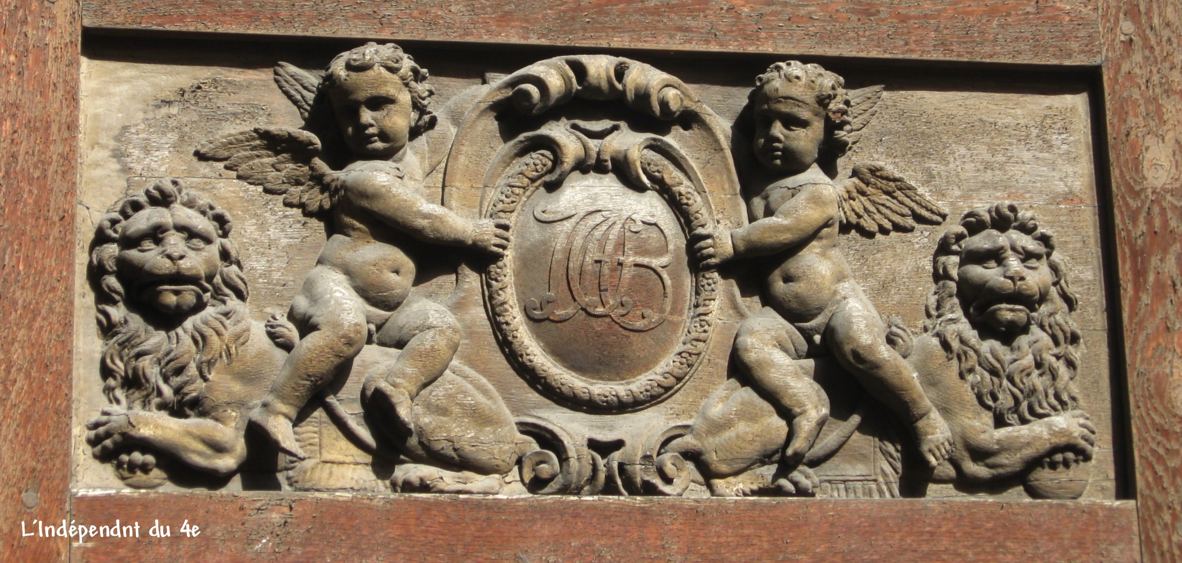 Ces anges qui décorent le fronton situé au-dessus du portail ne vérifie pas l'adage selon lequel "les anges n'ont pas de sexe". Ici il est bien sûr impossible de nier leur féminité... Malgré cela, je n'ai jamais entendu dire "une ange".