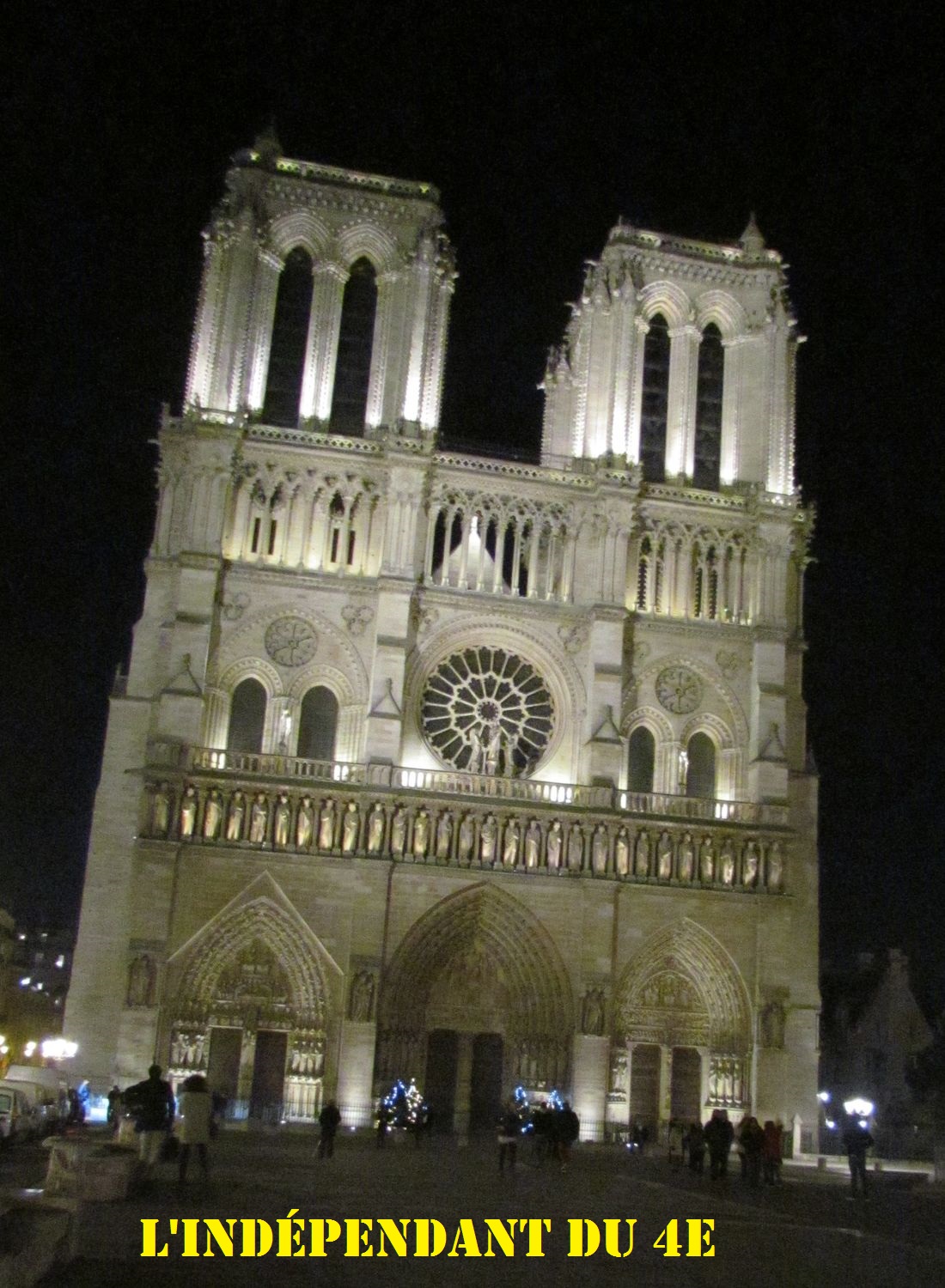 A l'arrière-plan, certains pourraient croire que la Cathédrale Notre-Dame n'a pas évolué. Or, tel n'est pas le cas. En effet, si les tours ont gardé la même silhouette, un changement majeur apparaît à la croisée des transepts : le pinacle (la grande flèche centrale) qui n'existait pas en 1827 :