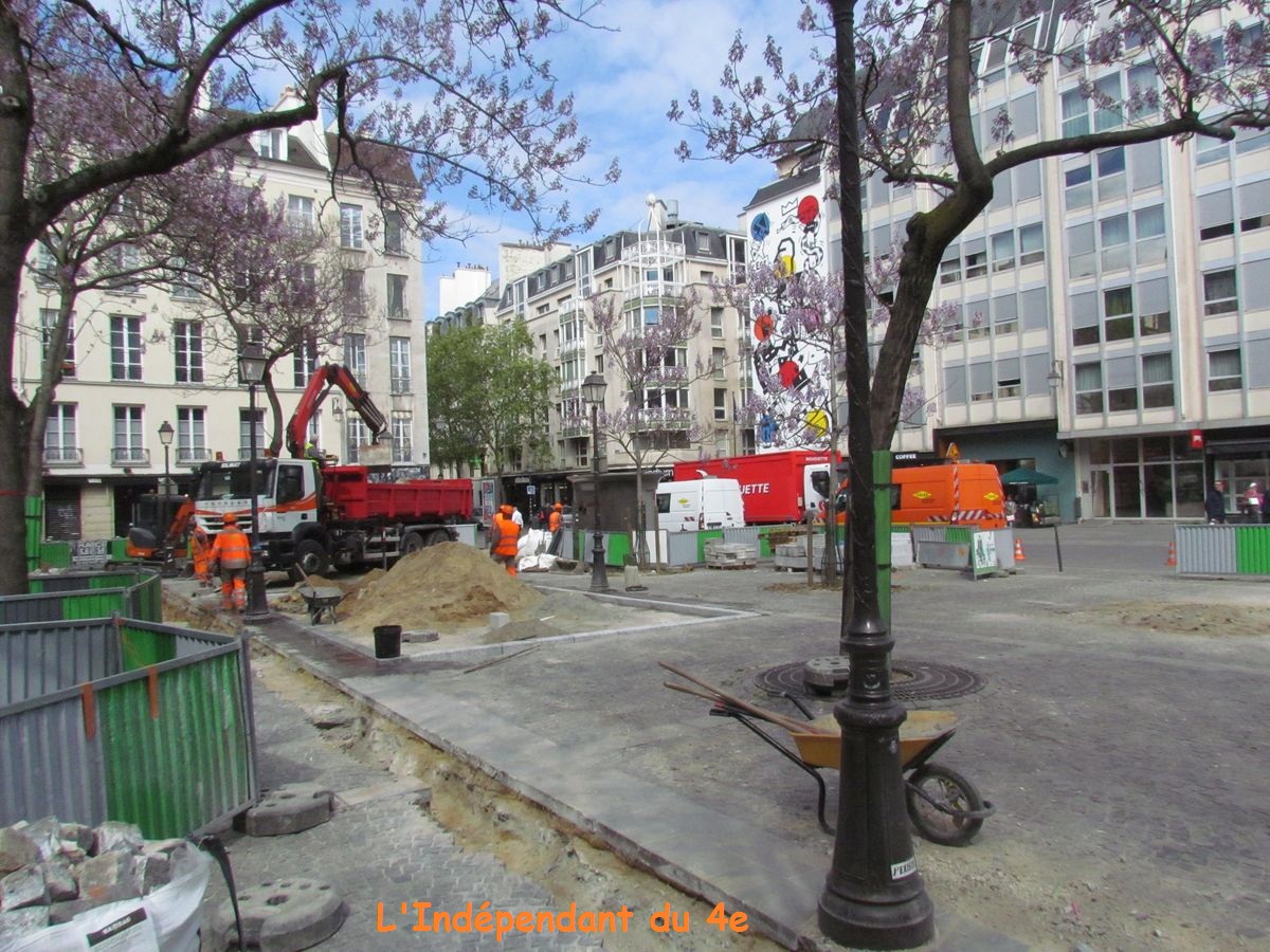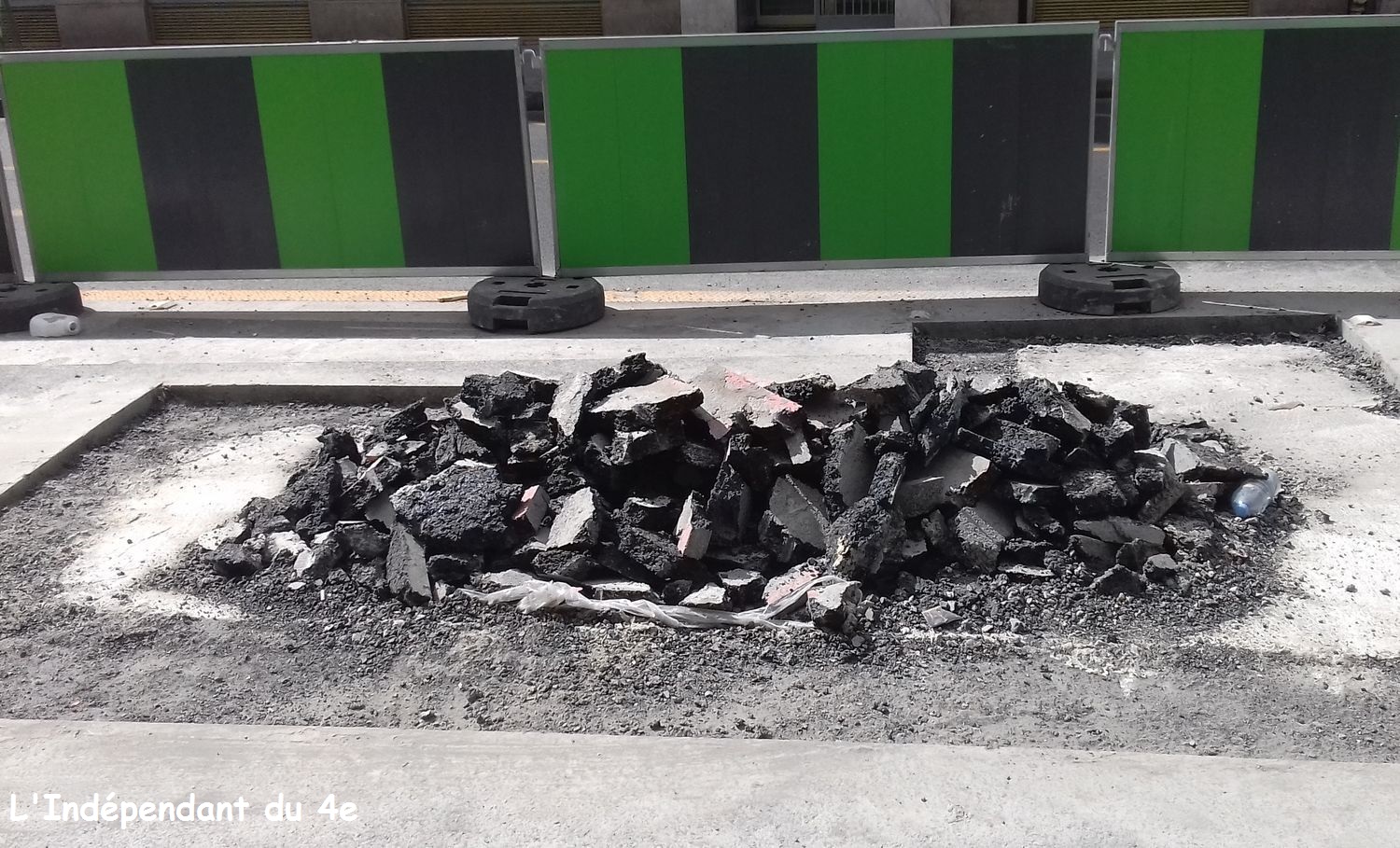 Cependant, depuis début janvier, des travaux ont conduit à la neutralisation de l'extrêmité Ouest de cette voie à la hauteur du Pavillon de l'Arsenal. Comme on le voit sur la photographie qui ouvre cet article le marquage et l'affichage sont très clairs quand on circule en direction de l'Ouest. On comprend qu'il faut tourner à droite pour contourner le pavillon de l'Arsenal.