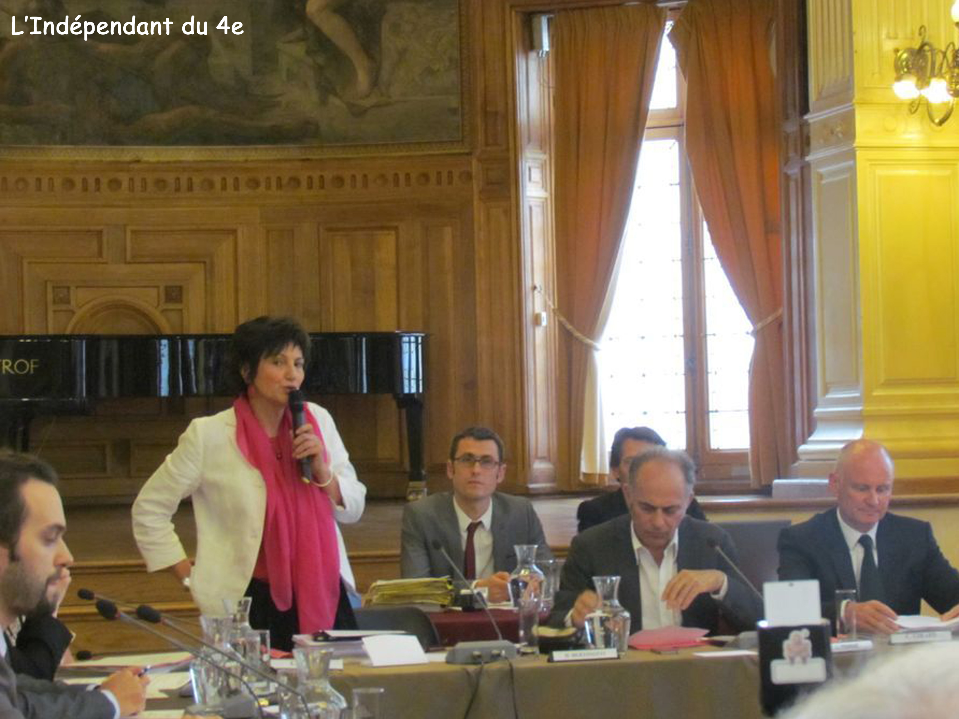 En mars 2007, le Conseil d'arrondissement était dirigé par Dominique Bertinotti qui était maire du 4e arrondissement depuis 2001. Il l'a été jusqu'en juillet 2012 lors d'une séance mémorable lors de laquelle elle a dû démissionner car elle était devenue ministre (voir mon article du 3 juillet 2012). Mme Bertinotti n'est pas forcément une personne qui accepte la contradiction ce qui fait que certains des articles de l'Indépendant du 4e n'ont pas eu ses faveurs. Cependant, il est amusant de noter que c'est certainement grâce à un de mes écrits que la devise de la République est apparue sur la façade de la République. En effet, sur un blog précédent "Le 4e que j'aime", j'avais souligné que la mairie du 4e arrondissement était resté dans son état impérial avec le chiffre de Napoléon III. Lors de la séance de janvier 2008, la maire a ouvert le conseil en signalant qu'elle était tellement préoccupée par ses fonctions qu'elle n'avait jamais remarqué que la devise de la République ne figurait pas sur la façade de la mairie de 4e ce qu'elle s'est alors engagée à demander et ce qui a été fait de manière assez réussie (voir mon article du 15 avril 2008).