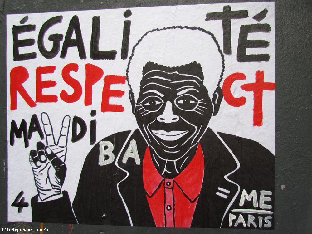 On sait que sur ce blog, je n'ai jamais été un grand fan du "Street Art", l'art de la rue, qui est souvent l'occasion de dégradation de l'espace publique de très mauvaise qualité et parfois pour des messages racoleurs. Cependant au moins de novembre dernier, dans un recoin de la rue du Renard, mon attention a été retenue par cette création très réussie qui rend un émouvant hommage à Madiba, Nelson Mandela. Faire rimer "égalité" avec "Respect"... Quel beau programme.