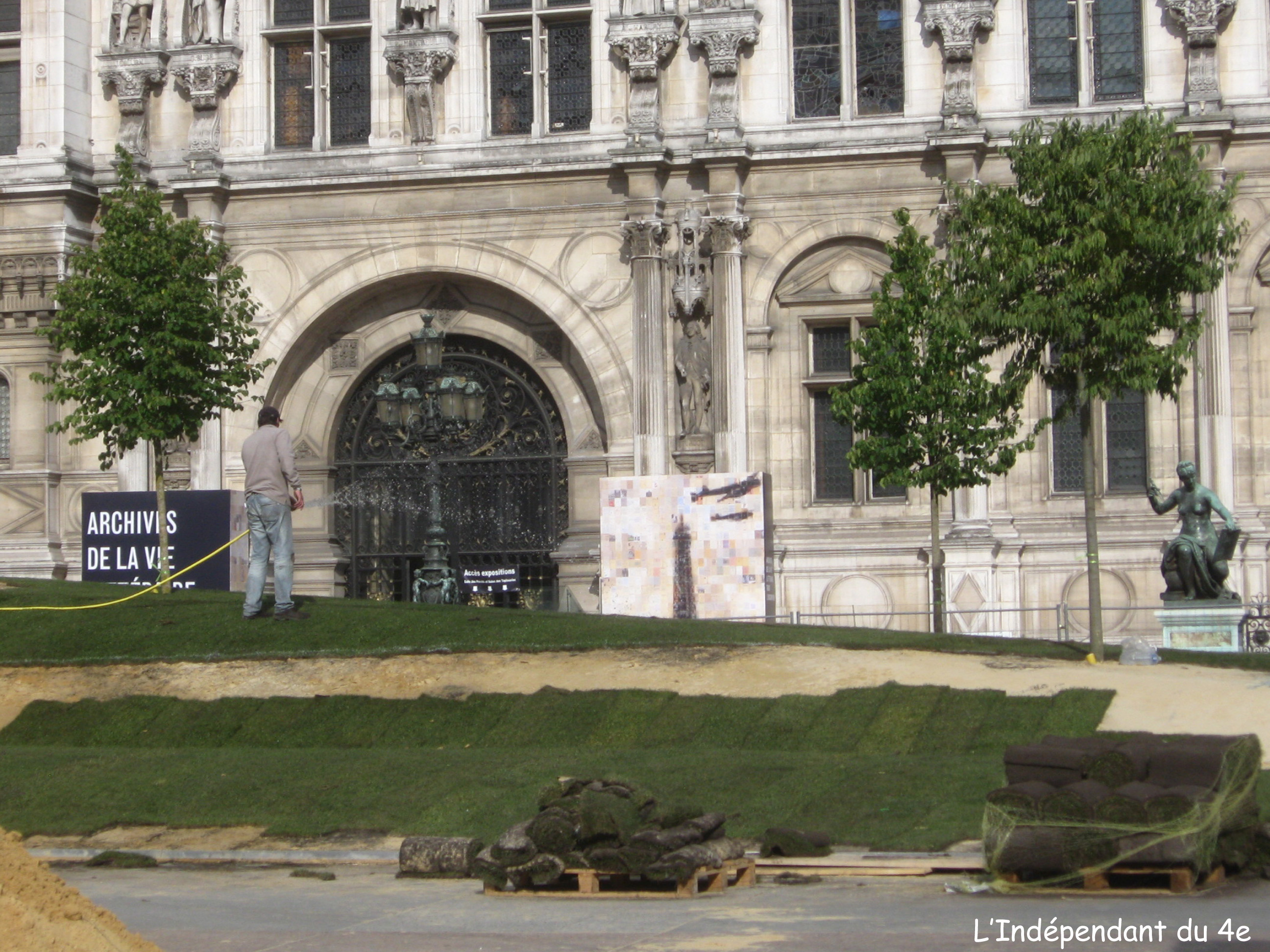 Depuis ce week end, on a le plaisir de voir de la végétation sur la place de l'Hôtel de Ville grâce à la mise en place d'un jardin éphémère. Je dois reconnaître qu'en 2008, sur ce même blog, j'ai dit beaucoup de bien de cet aménagement provisoire (voir mon article du 11 juillet 2008).