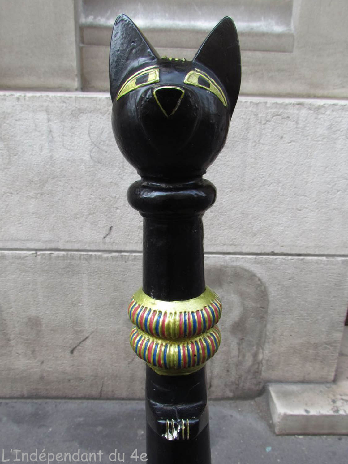 En se promenant dans les rues du 4e, on peut faire de surprenantes découvertes. Ainsi dans le quartier Saint-Gervais, j'ai pris en photo ce plot transformé en chat. Une très belle réussite !