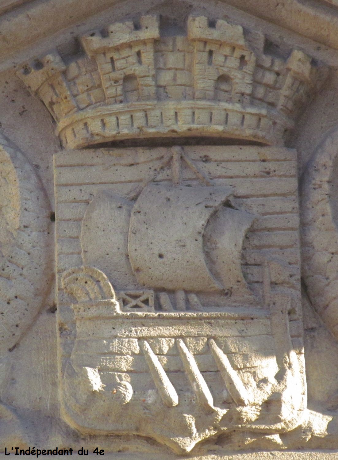On la retrouve en plusieurs exemplaires dans la partie supérieure de l'édifice. Cependant la version la plus étonnante apparaît dans les angles du bâtiment : la nef de Paris apparaît sous la forme d'une proue de galère romaine :
