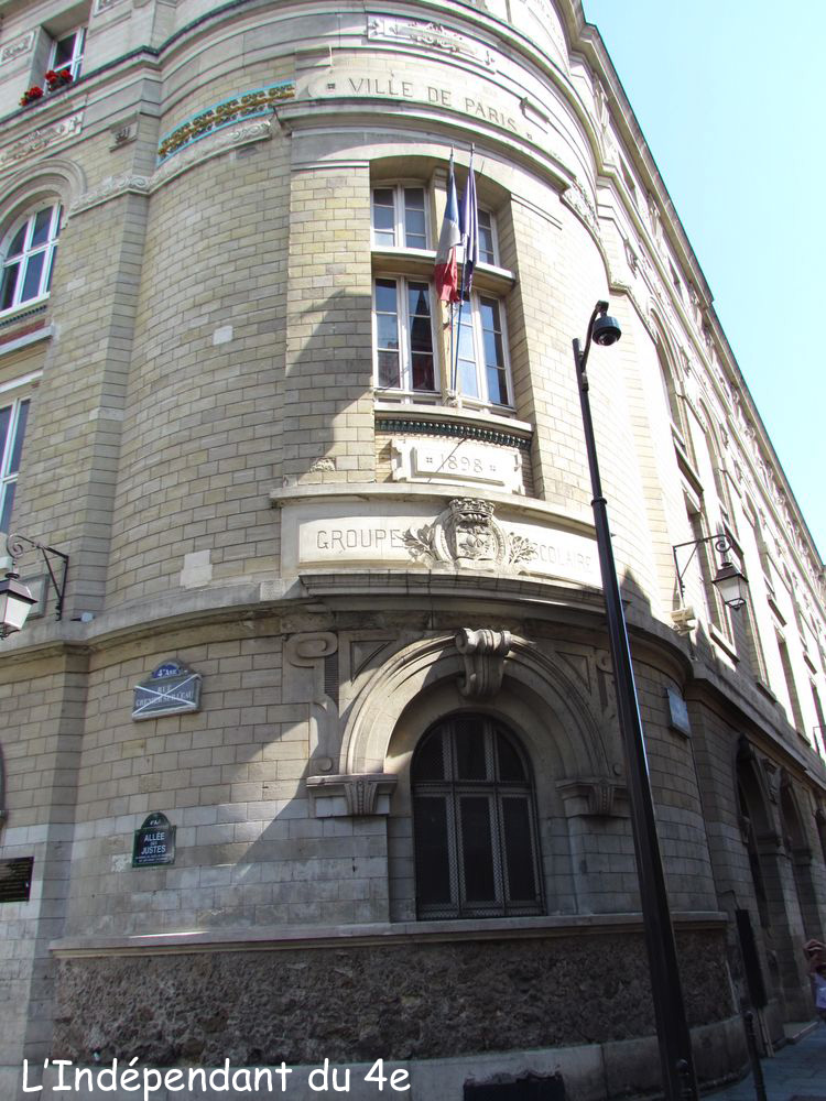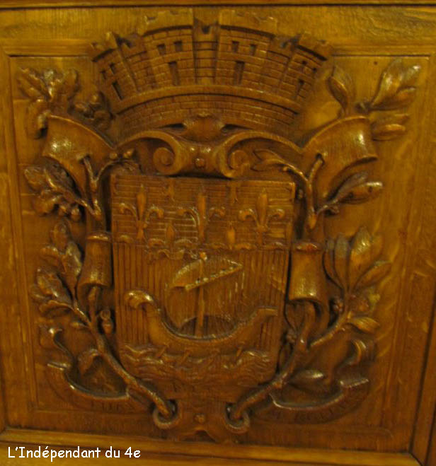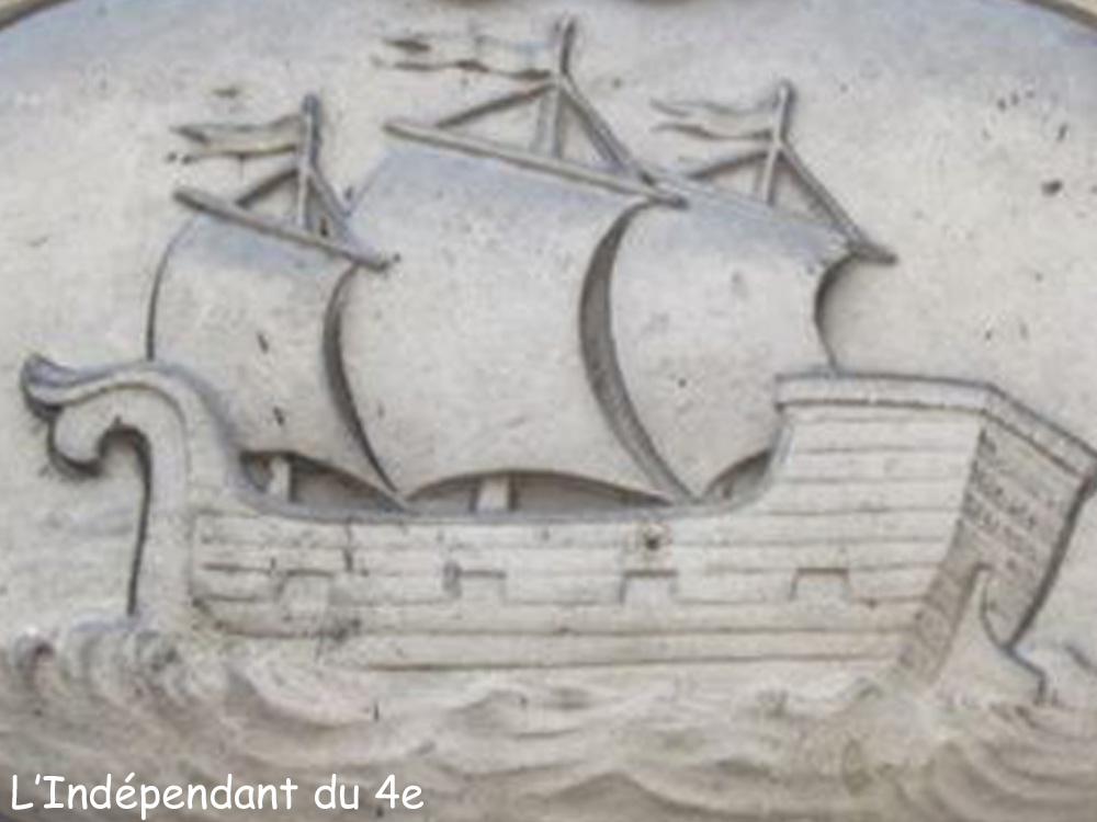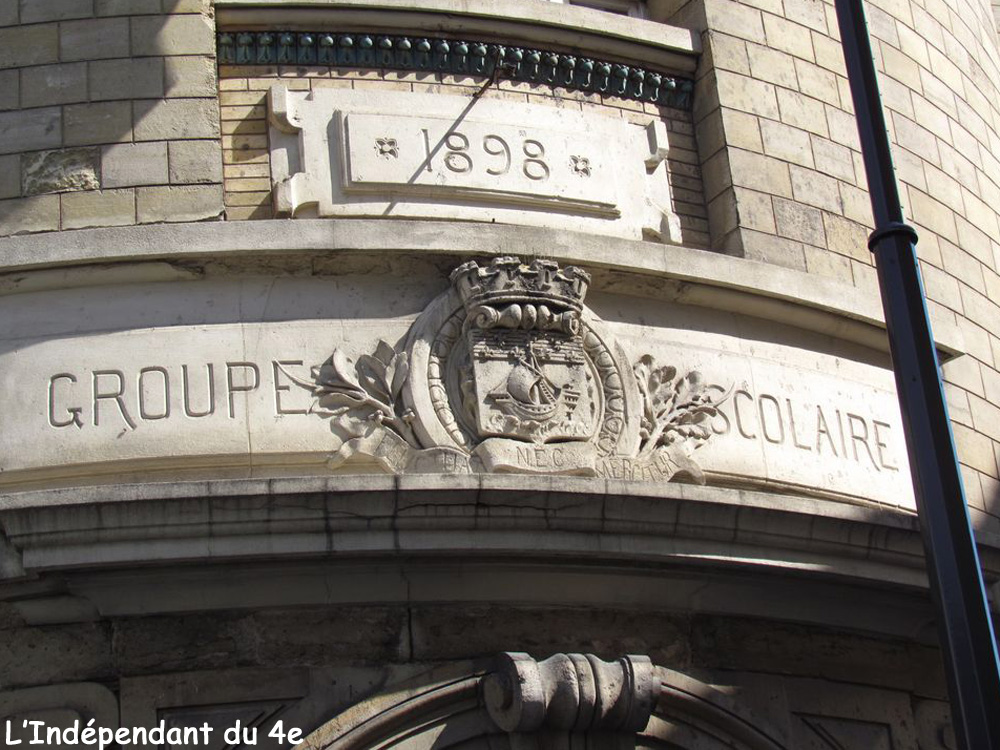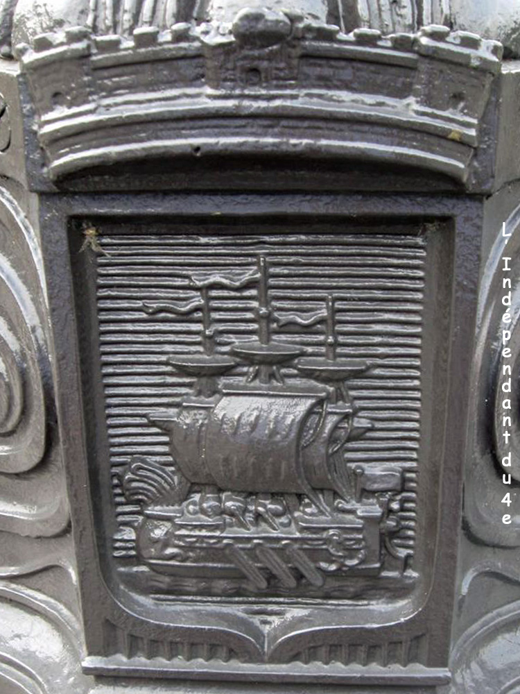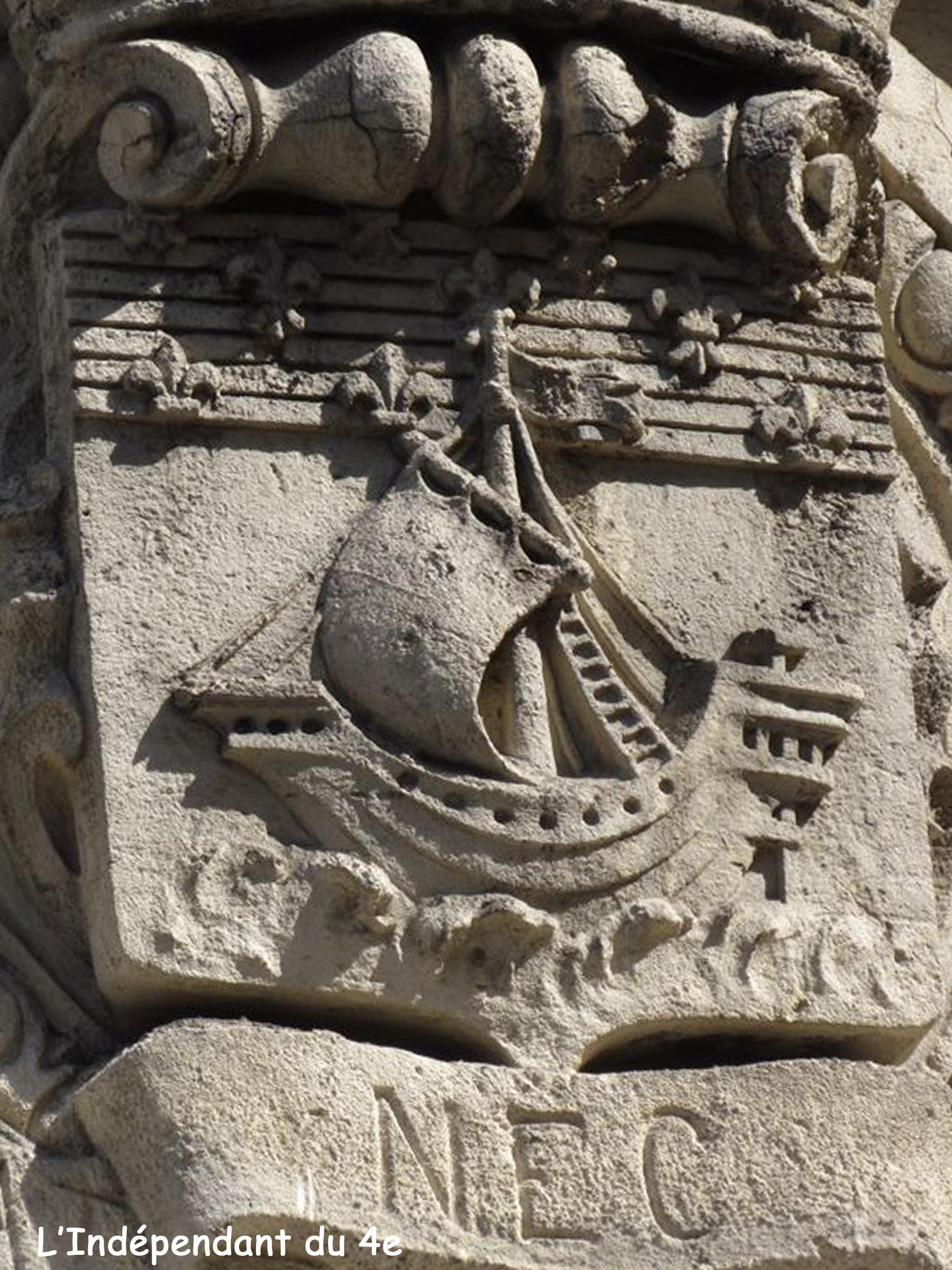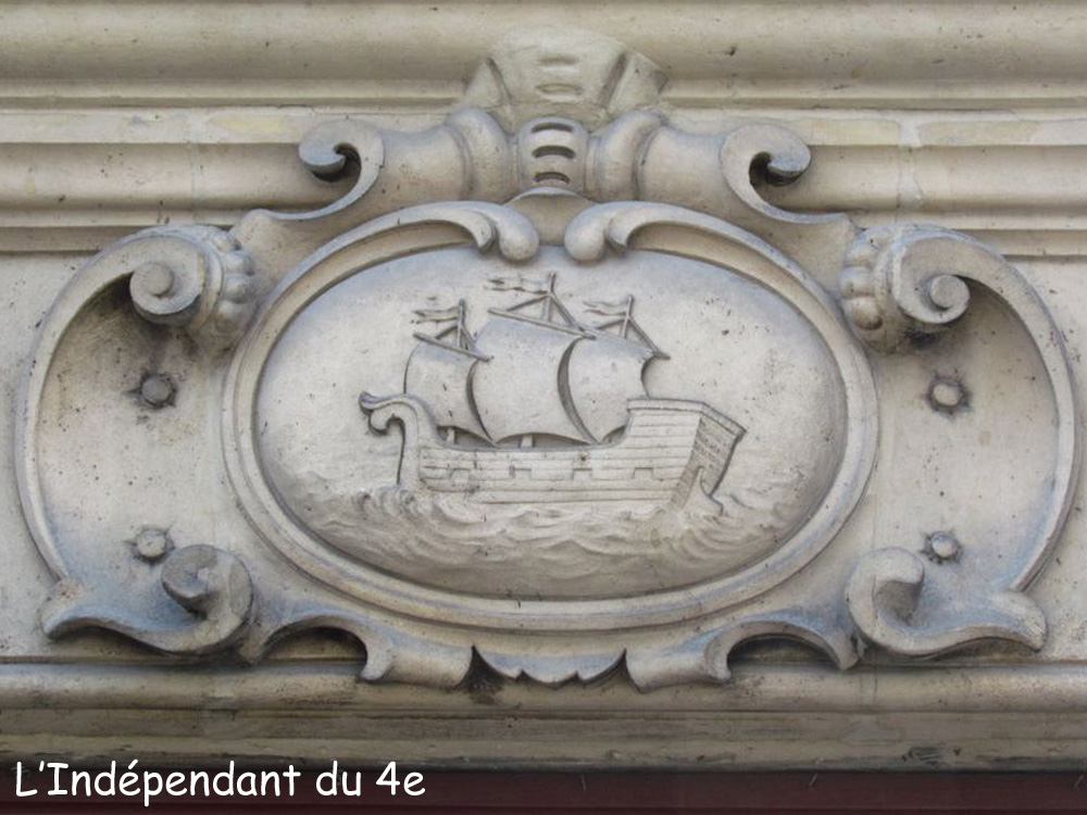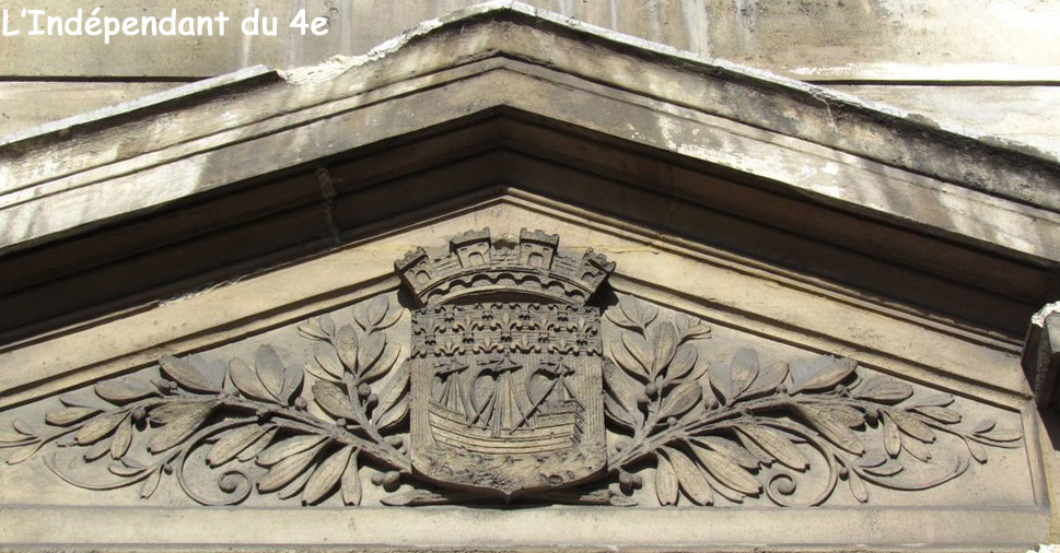 Cette nef est représentée avec des rames. Ce qui n'est pas si fréquent. Il s'agit d'un type de représentation que l'on peut voir par exemple au-dessus du portail de l'école de la rue du Fauconnier (voir article du 3 septembre 2011) ou au lycée Sophie Germain (voir article du 17 novembre 2011). Un type de représentation qui semble assez répandu dans les années 1880.
