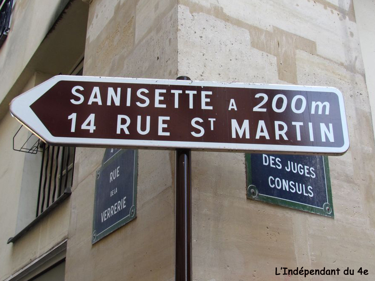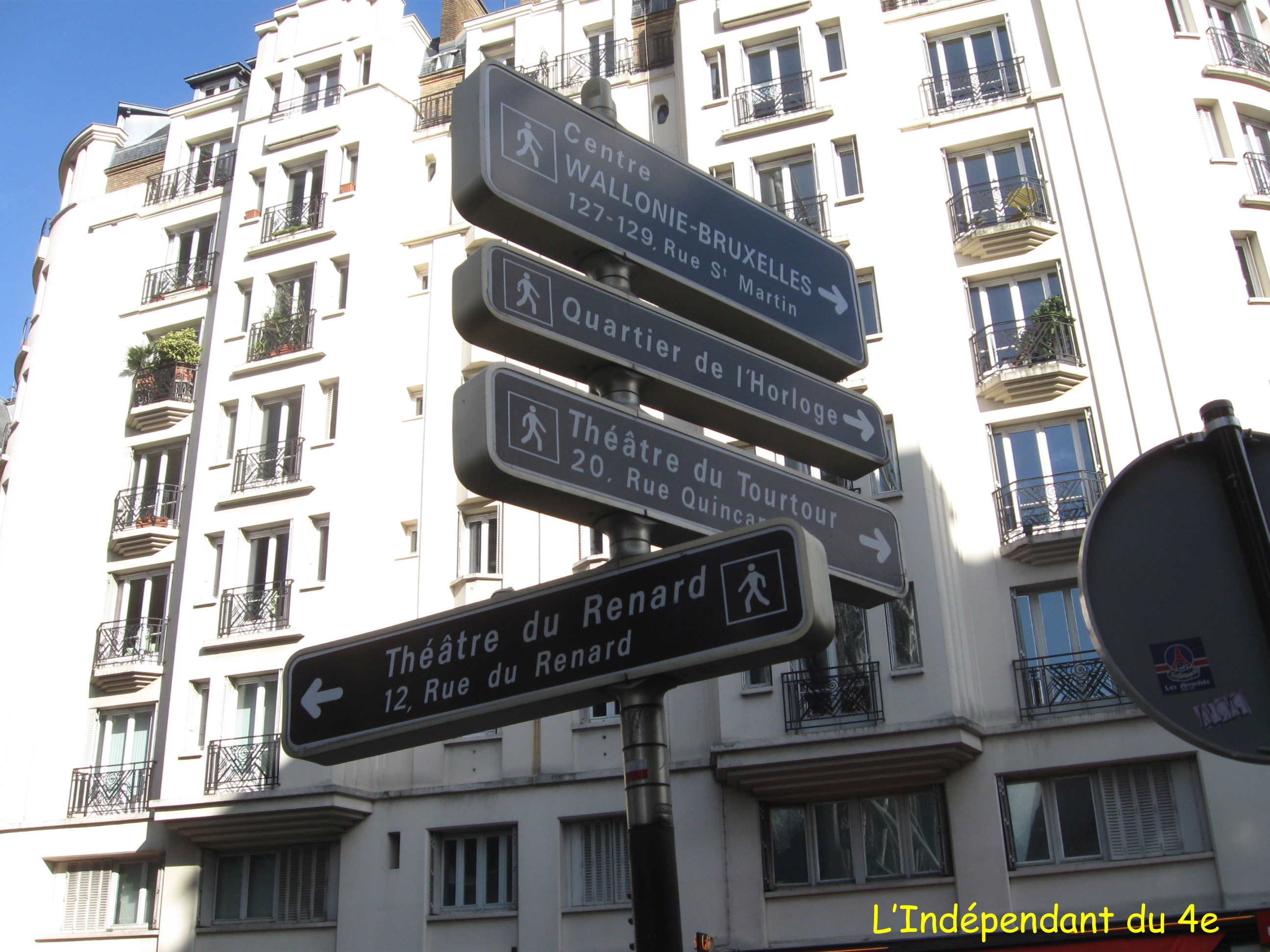 Presque tous les problèmes que connaît le 4e arrondissement ont été réglés (le thème porte sur "les paris tenus du 4e") et l'action merveilleuse de la maire du 4e est une dogme -Les seuls problèmes qui subsistent sont dûs à l'ignominie de la politique gouvernementale-. Par conséquent, je me permets d'aborder un sujet qui peut paraître anecdotique et bien prosaïque : les panneaux indicateurs que l'on peut voir dans le 4e arrondissement.