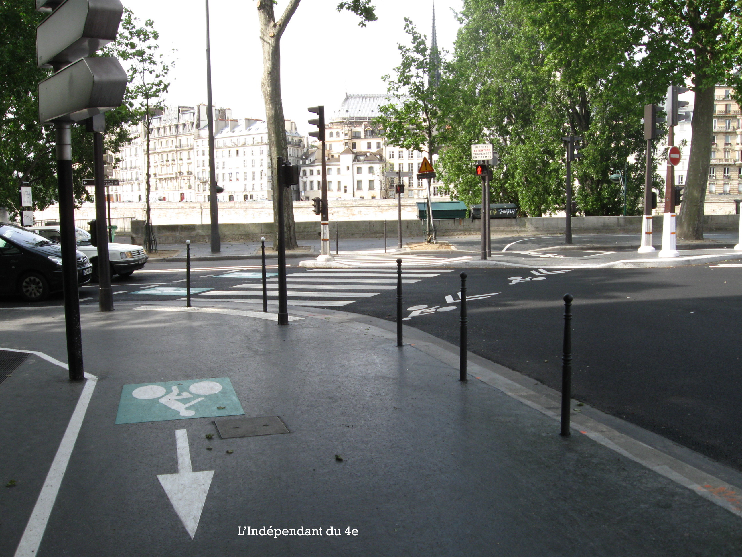 La question se pose d'autant plus que certaines pistes cyclabes croisent les voies utilisées par les piétons (je pense par exemple à la piste cyclabe qui va être inaugurée quai de l'Hôtel de Ville le 12 septembre prochain).