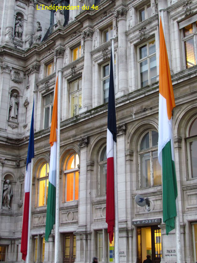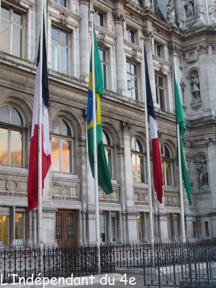 Ce n'est pas la première fois que je consacre un article aux drapeaux qui ornent l'Hôtel de Ville à l'occasion des visites d'Etat mais je suis vraiment très heureux de publier cet article. En effet, cet après-midi, j'ai eu le plaisir de voir la façade pavoisée des drapeaux allemands et français.