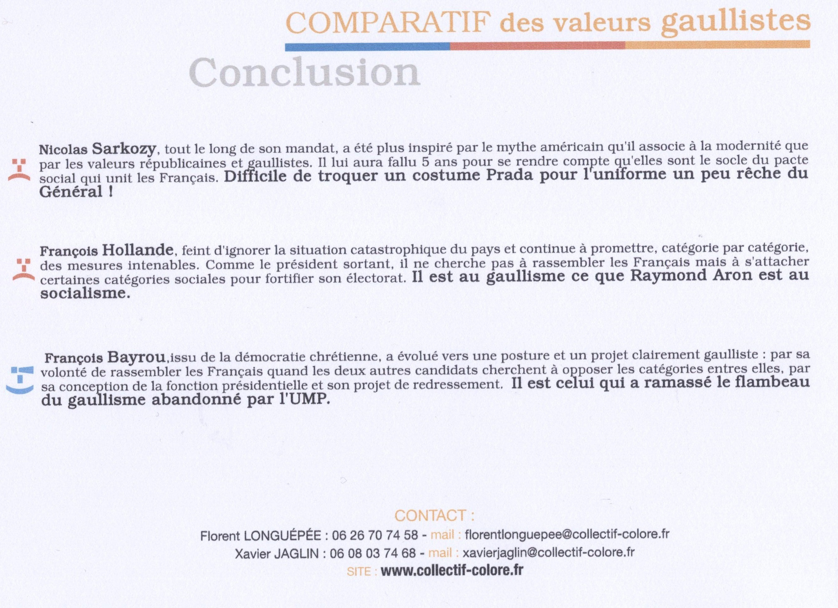 10 : François Hollande (candidat du Parti Socialiste), 9 : Nicolas Dupont-Aignan (candidat de Debout la France !), 8 : François Bayrou (candidat du MOuvement DEMocrate)
