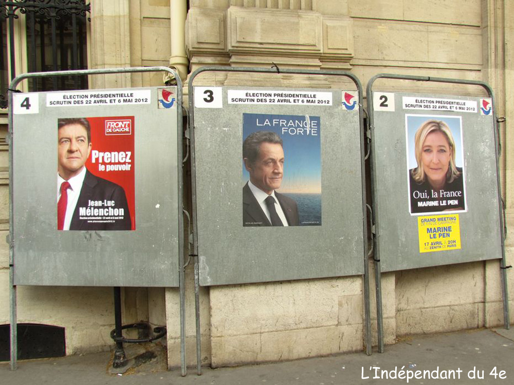 Le 1er tour de l'élection présidentielle aura lieu dans 2 jours, le 22 avril 2012. Depuis la parution de mon article du 10 avril (où j'avais signalé que les affiches de François Bayrou avaient été les premières à être collées) tous les panneaux officiels se sont assez rapidement remplis. Les photographies qui accompagnent cet article datent du 11 avril 2012.
