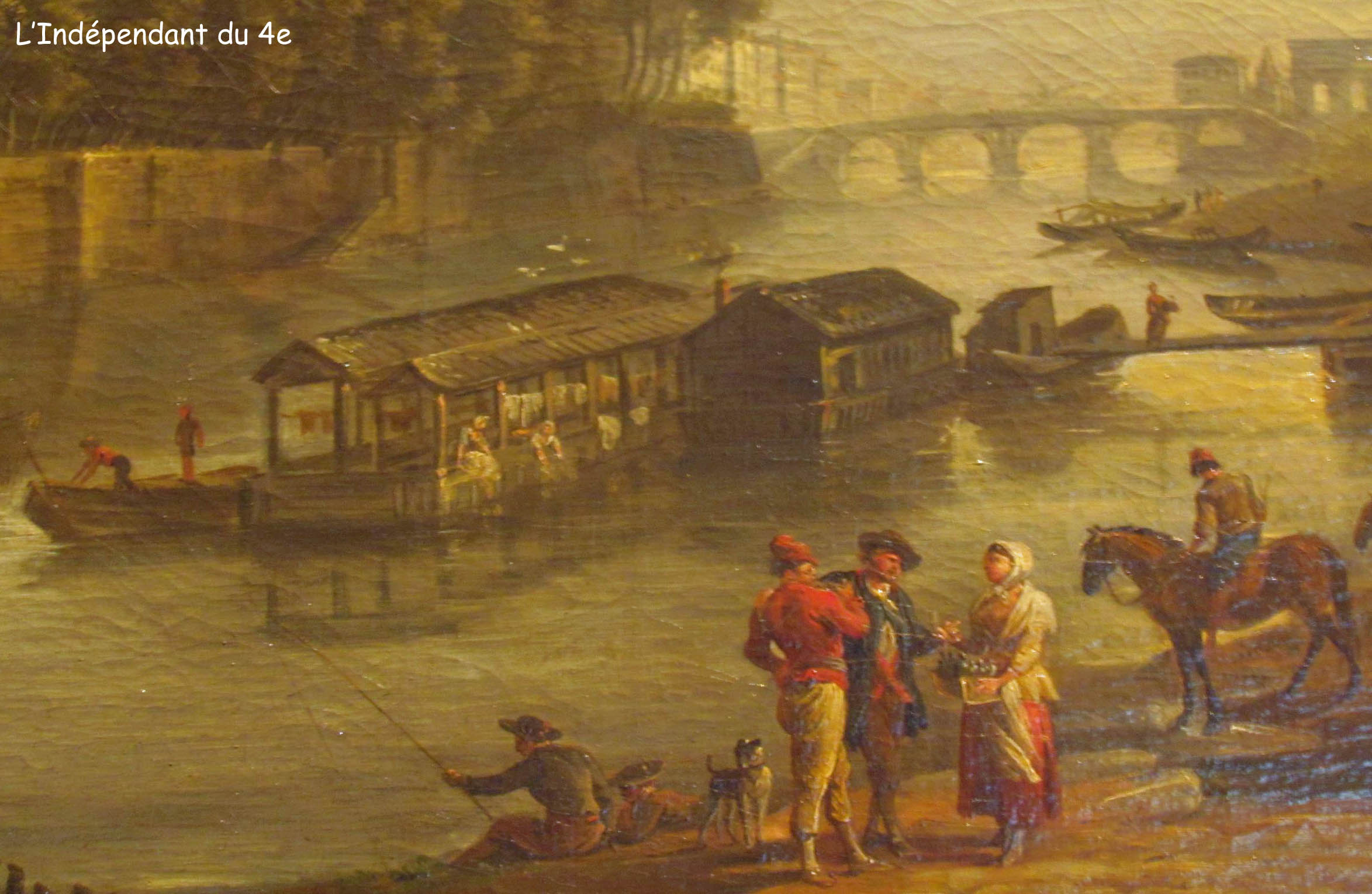 Voici une gravure que je possède depuis une bonne trentaine d'année. Elle m'a longtemps laissé perplexe car quand j'ai longtemps cru qu'à l'horizon à gauche on apercevait la silhouette de la cathédrale Notre-Dame et je n'arrivais pas à identifier le pont Saint-Landry.