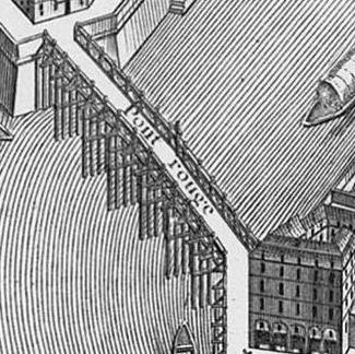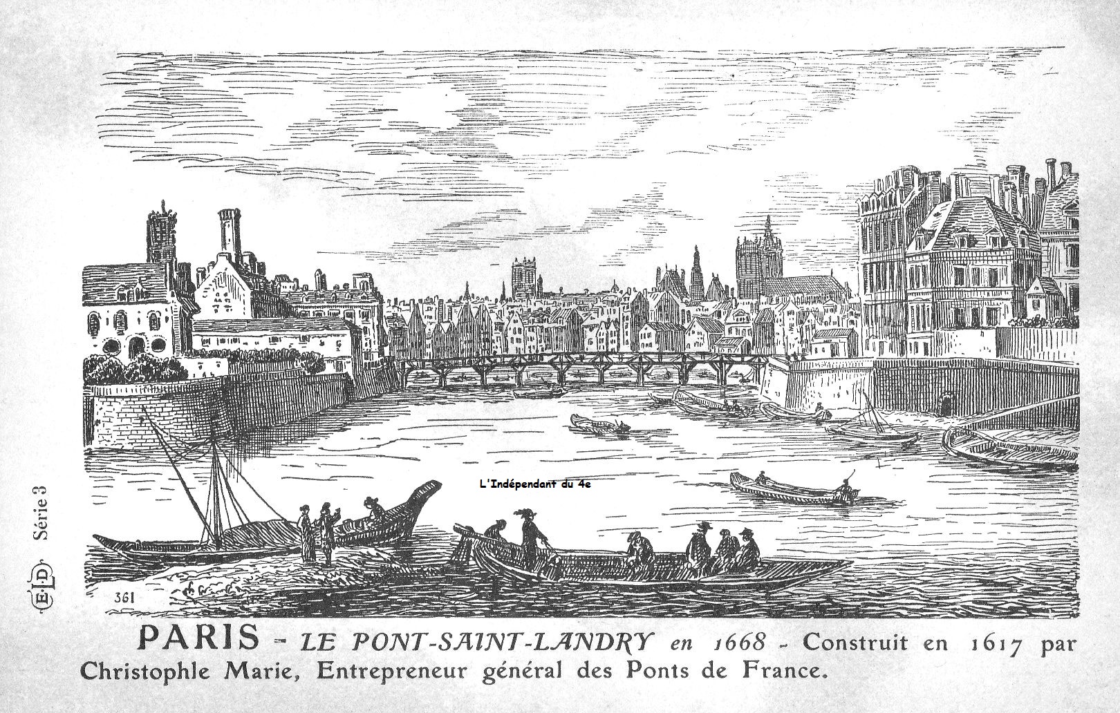 Ce pont Saint-Landry construit en 1630 et 1634 par Christophe Marie était en bois comme on le voit sur la gravure :