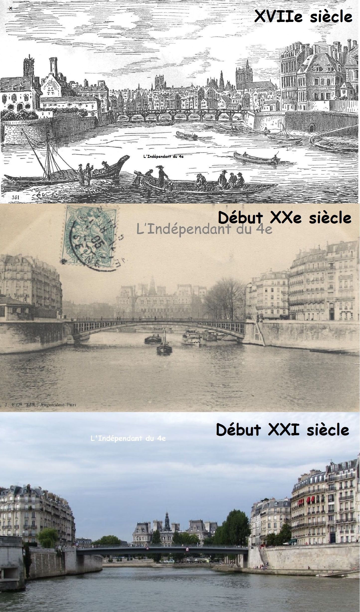 Le pont Saint-Landry est le nom du 1er pont qui a relié la pointe Est de l'ïle de la Cité que l'on voit à gauche et la pointe Ouest de l'ïle Saint-Louis que l'on voit à droite.