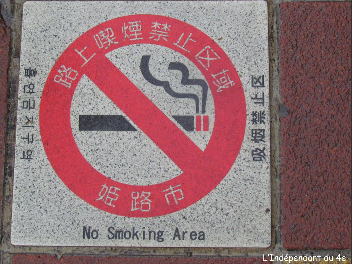 Je rentre d'un nouveau séjour de deux semaines au Japon. Mon attention a été particulièrement attirée par une pratique qui s'est répandue depuis mon dernier déplacement dans ce pays (en 2012) et sur laquelle je laisserai mes lecteurs se faire un avis : l'existence de vastes zones non fumeurs dans l'espace public de nombreuses grandes villes.