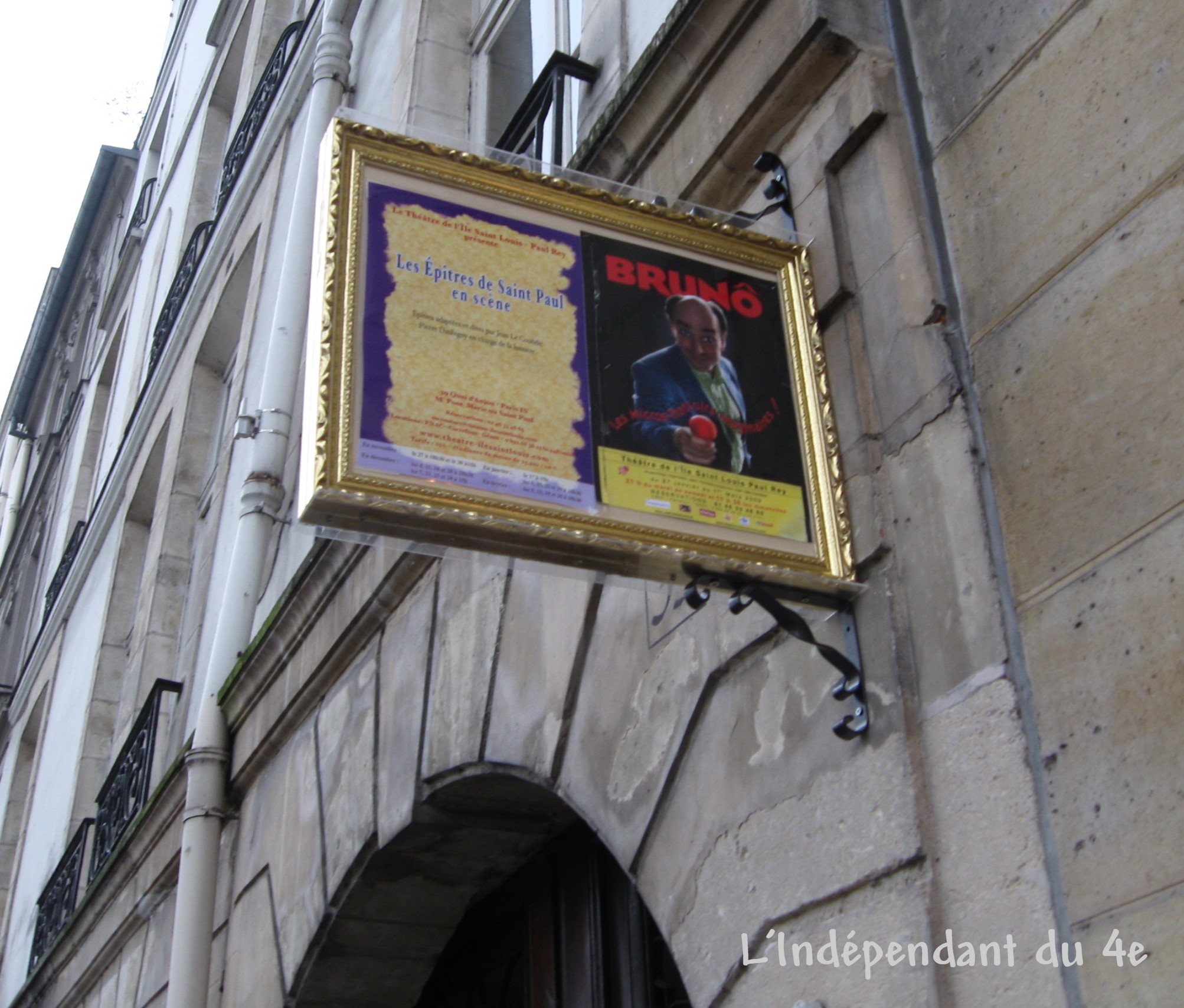 Au 39 quai d'Anjou,dans la partie Nord de l'ïle Saint-Louis, à l'Est du Pont Marie, ce panneau permet de voir la présence d'une salle de spectacle. J'avoue que je ne l'avais jamais vu. J'ai découvert le théâtre de "l'ïle Saint-Louis-Paul-Rey" grâce à une soirée organisée par l'association "le 4e au coeur" le samedi 21 février 2009. Nous avons ainsi pu aller applaudir l'humoriste Brunô qui passe jusqu'au 1er mars 2009... C'est demain le dernier jour ! (voir l'article sur le blog de l'association).