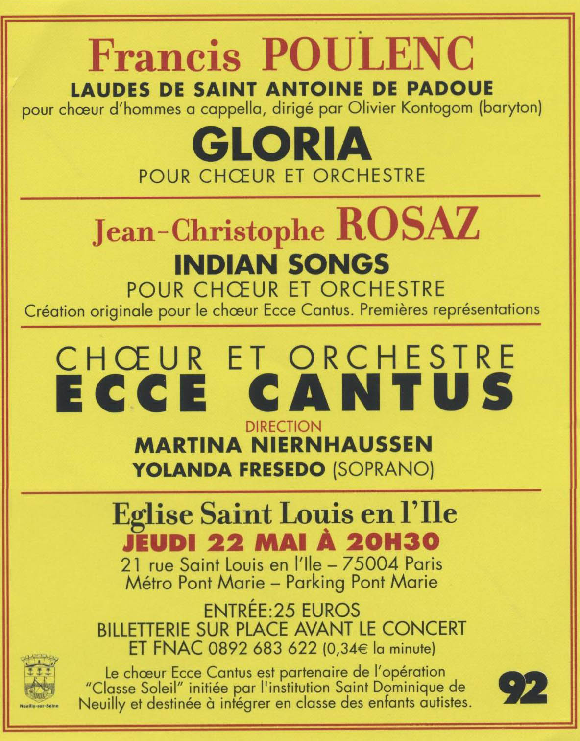 - mercredi 20 mars 2013 à 20h30 à l'église Notre-Dame-des-Blancs-Manteaux, concert "Motets du temps de Carême et de la Semaine Sainte" de Palestrina, Victoria, ... par l'ensemble de la chapelle Saint-Louis de l'Ecole militaire Blandine Vatakam.