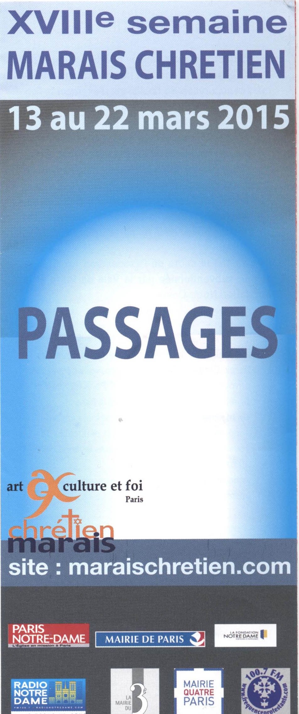 Le "Marais chrétien" est une très belle manifestation qui a été initiée à la fin des années 1990. Il permet de proposer de manière oecuménique des activités culturelles dans différents lieux de culte du Marais (ainsi que dans les mairies d'arrondissement). En 2013, la XVIe semaine du Marais chrétien a pour thème "Parole et silence". Elle se tiendra du 16 au dimanche 24 mars. Voici quelques activités auxquelles je pense pouvoir assister:
