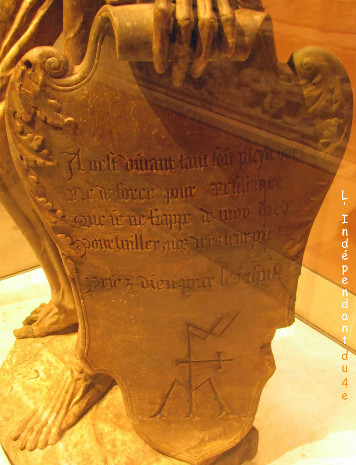 La statue est assise sur un tas de livres avec un globe qui représente les signes astrologiques :